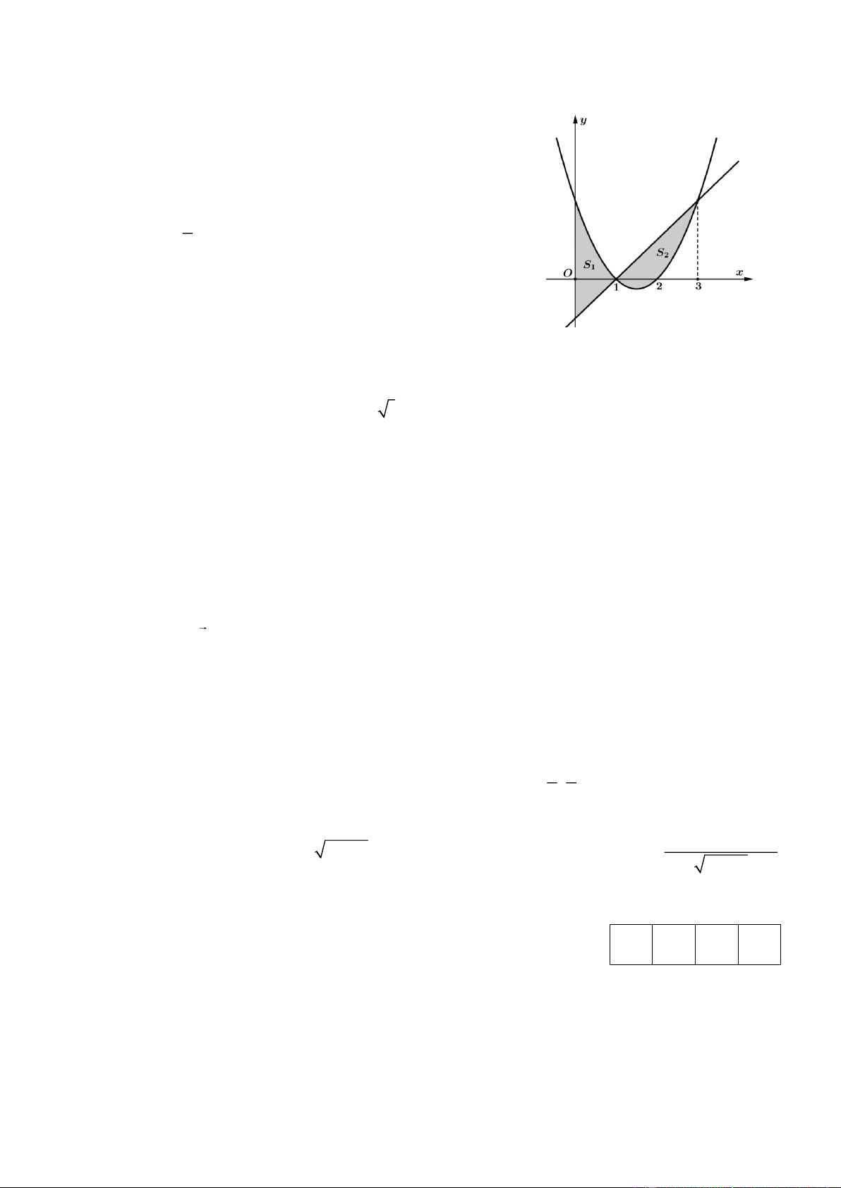 y = x − 3x + 2 và y = x − 1 và S ; S  là phần diện tích phần được tô như trong  1 2 hình dưới.
