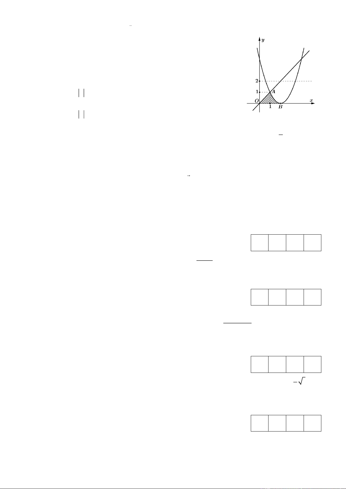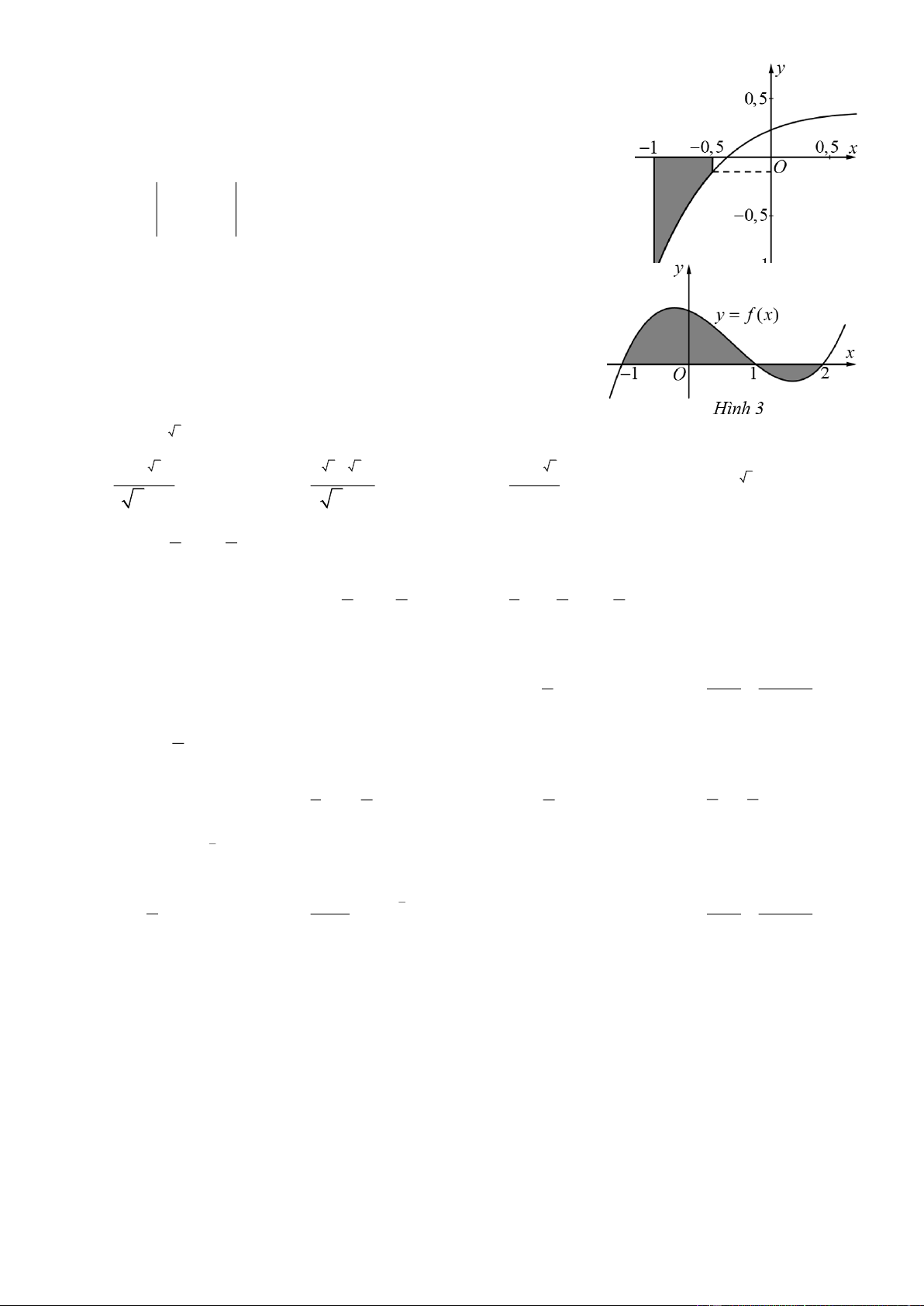 Câu 4. Gọi S  là diện tích hình phẳng được tô đậm trong Hình 3. Công  thức tính S  là:  1 2 1 2   A. S = f (x)dx + f (x)d . x     B. S =