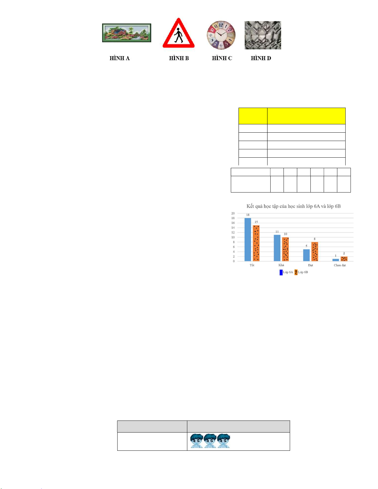 Bài 4 (1,5 điểm). Biểu đồ tranh sau biểu diễn số lượng học sinh lớp 6A sử dụng các phương tiện