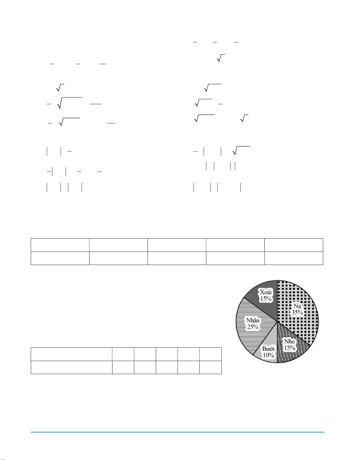 7 một trường trung học cơ sở. Mỗi học sinh chỉ chọn một loại quả khi được hỏi ý kiến. a) Hoàn thành bảng sau: Loại quả Na Nho Bưởi Nhãn Xoài Số học sinh yêu thích ? ? ? ? ?