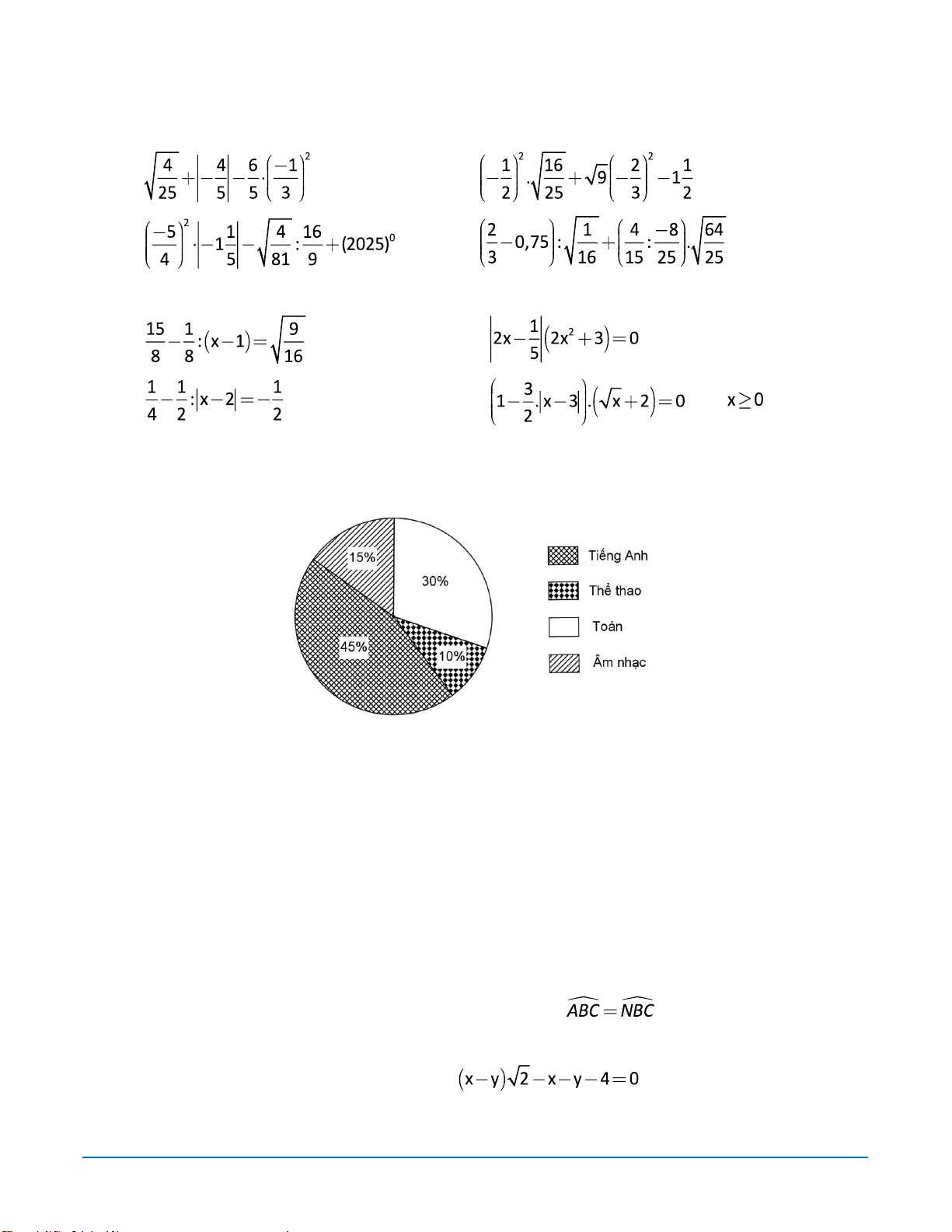Bài 3.Thực hiện phép tính: 3 2 a) 2 25 3 7 5 1 1 3 7 b) . 16 2 3 4 4 2 7 12 7 64 16 1 c) . 5 2 0 2025 . d) 10. 0,01. 3. 49 . 4 5 100 9 6 2 e) 2 25 64 2 3 7 1,69 3 2 7 9 16