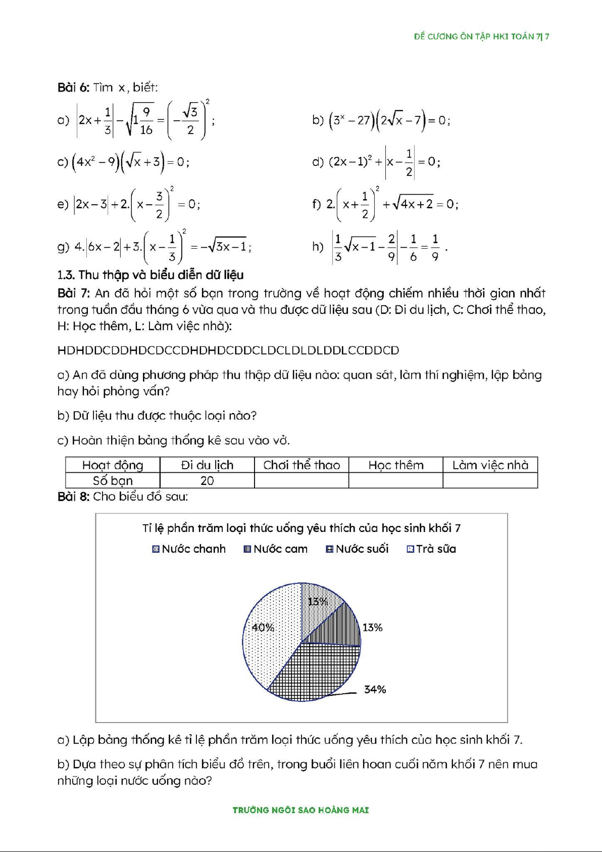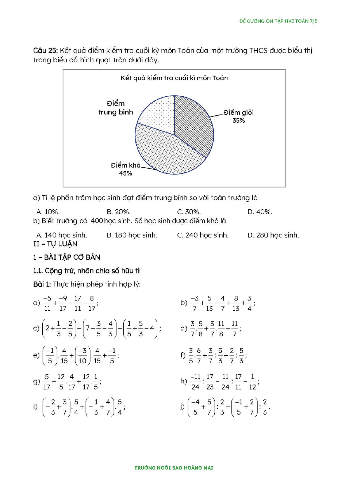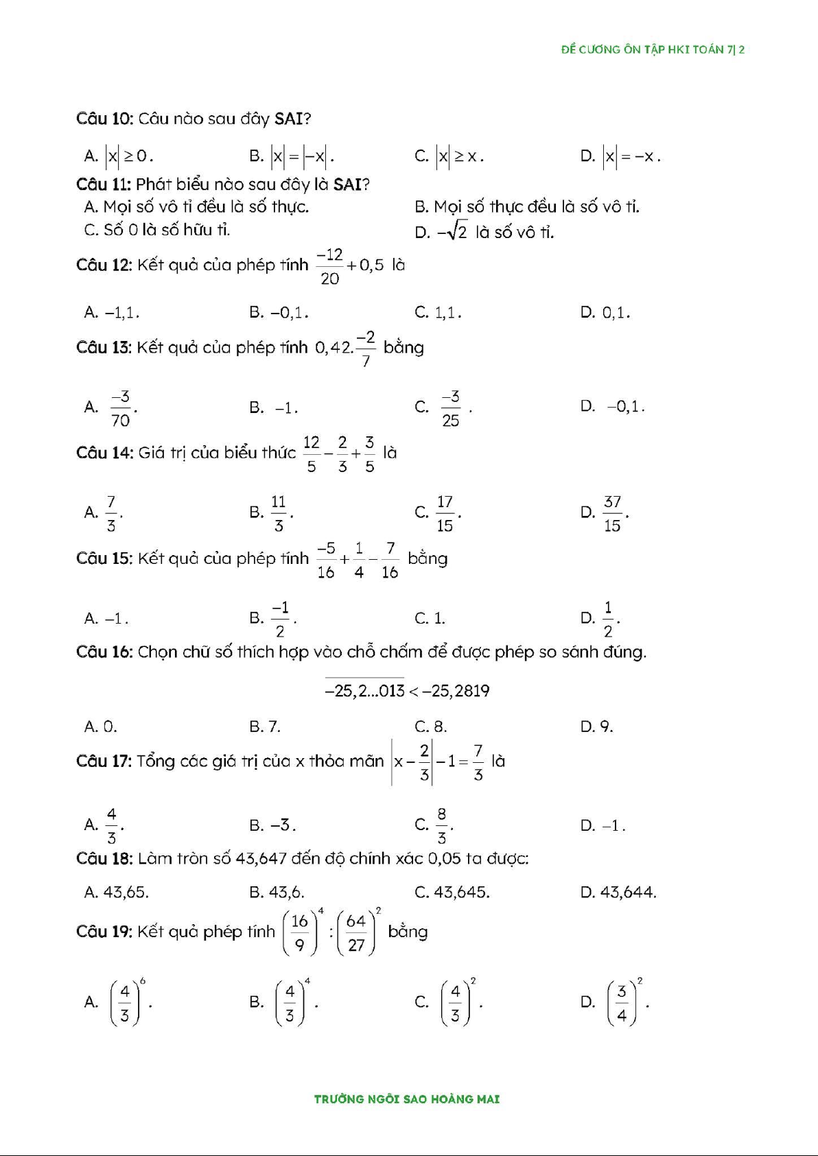 Đề cương học kì 1 Toán 7 năm 2025 – 2026 trường Ngôi Sao Hoàng Mai – Hà Nội