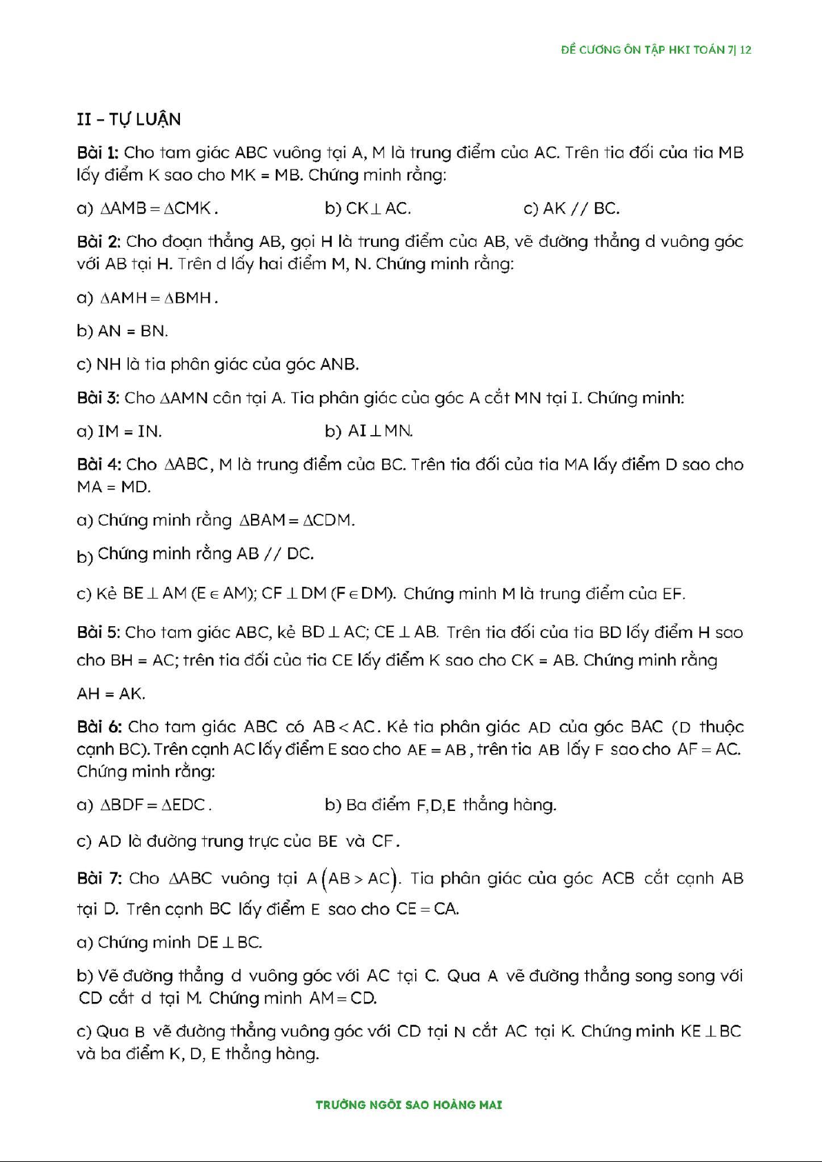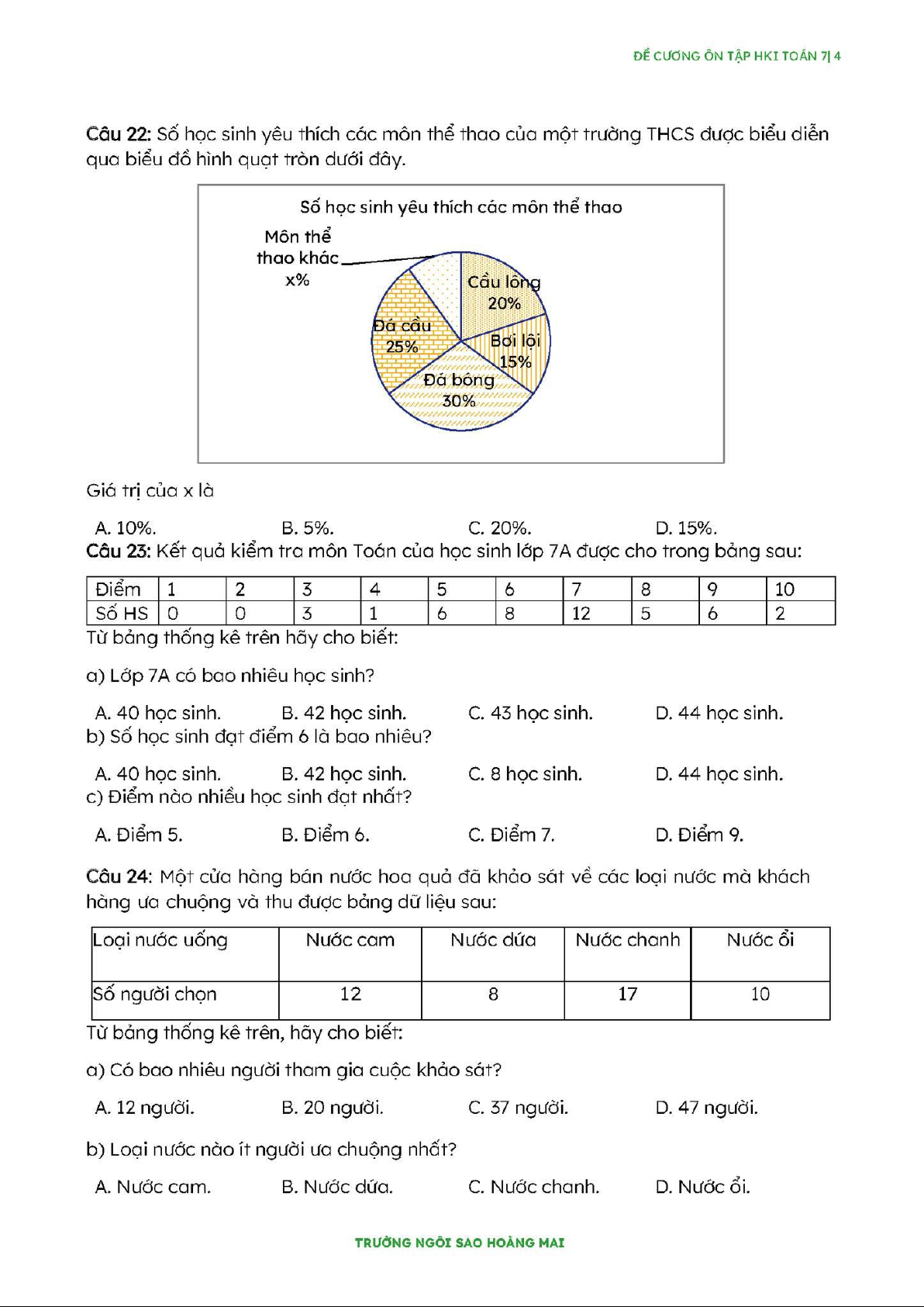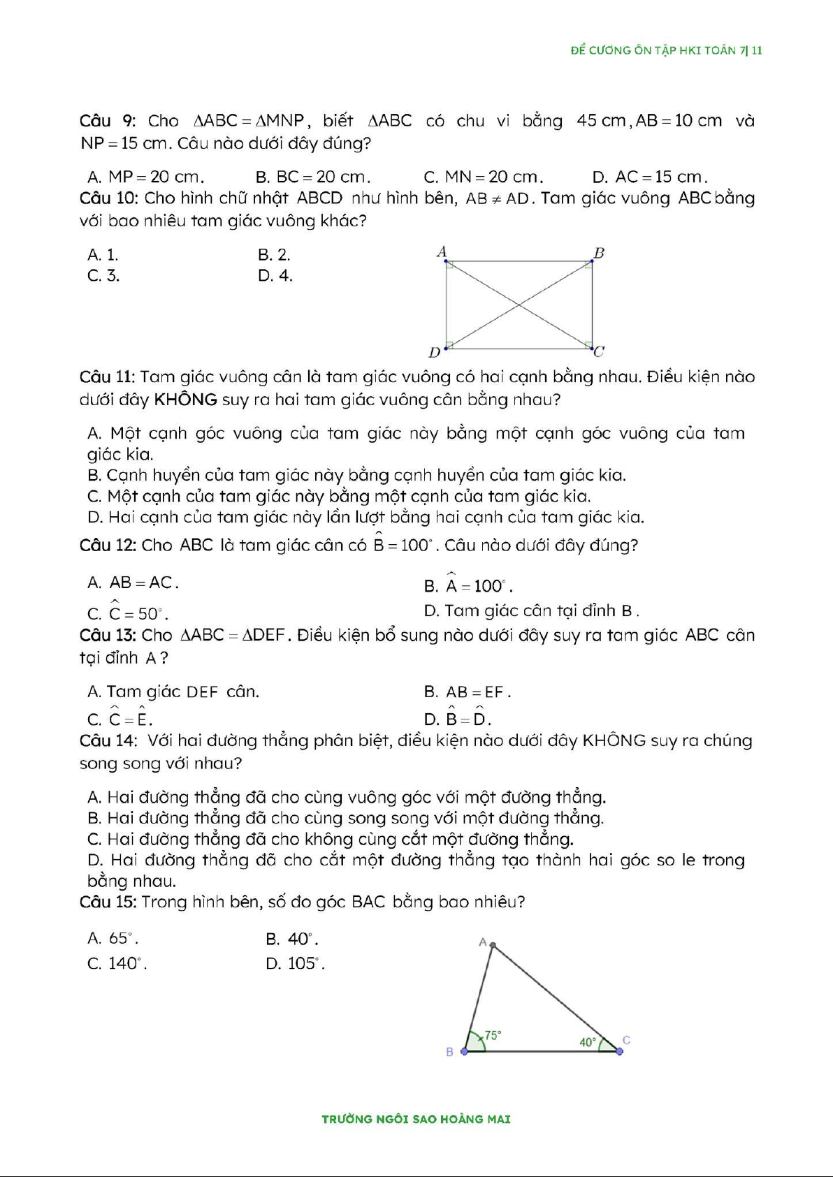 Đề cương học kì 1 Toán 7 năm 2025 – 2026 trường Ngôi Sao Hoàng Mai – Hà Nội