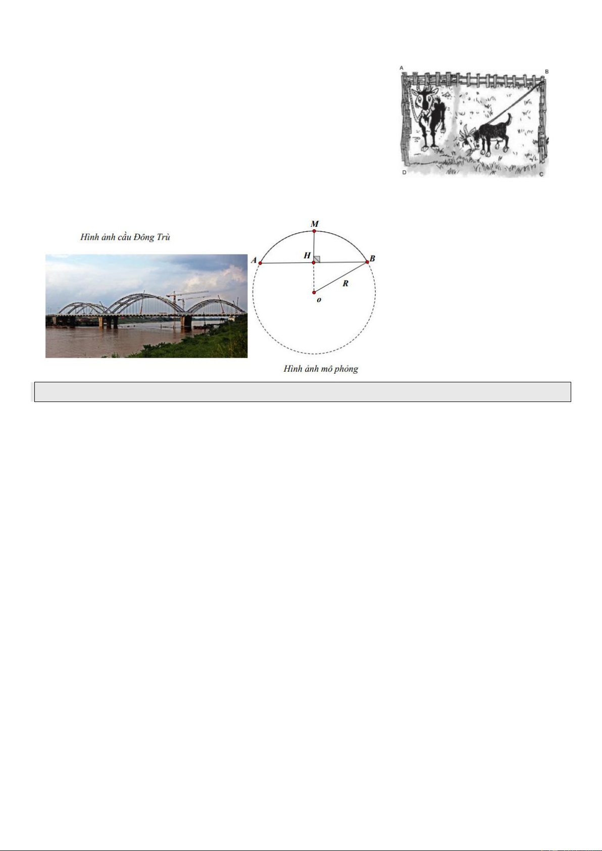 là 47m. (được mô phỏng hình vẽ dưới) Hãy tính độ dài bán kính R của đường tròn chứa cung tròn là