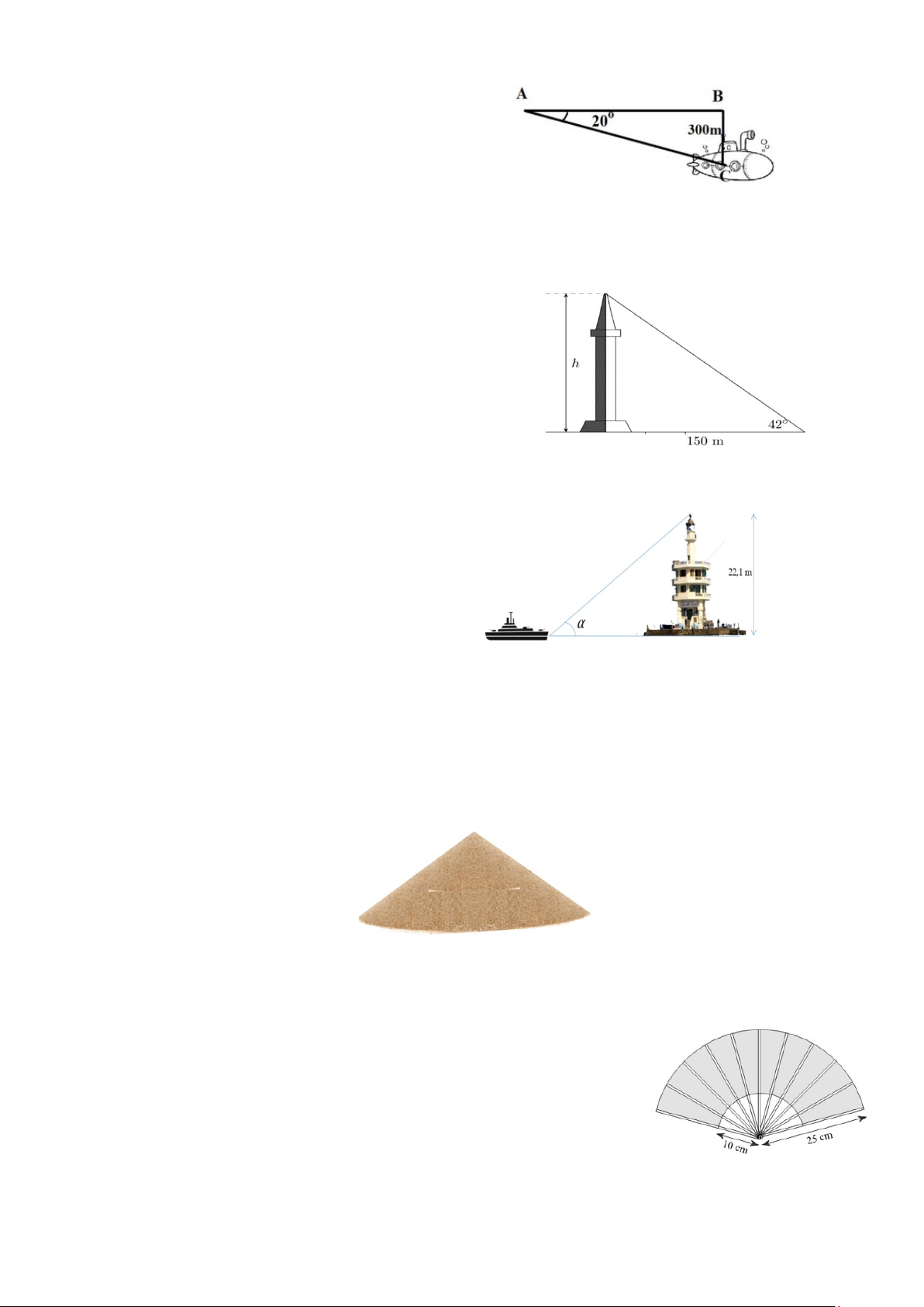 m. Hỏi chân đống cát đó chiếm một diện tích là bao nhiêu (làm tròn với độ chính xác 0,05)? Bài 5.