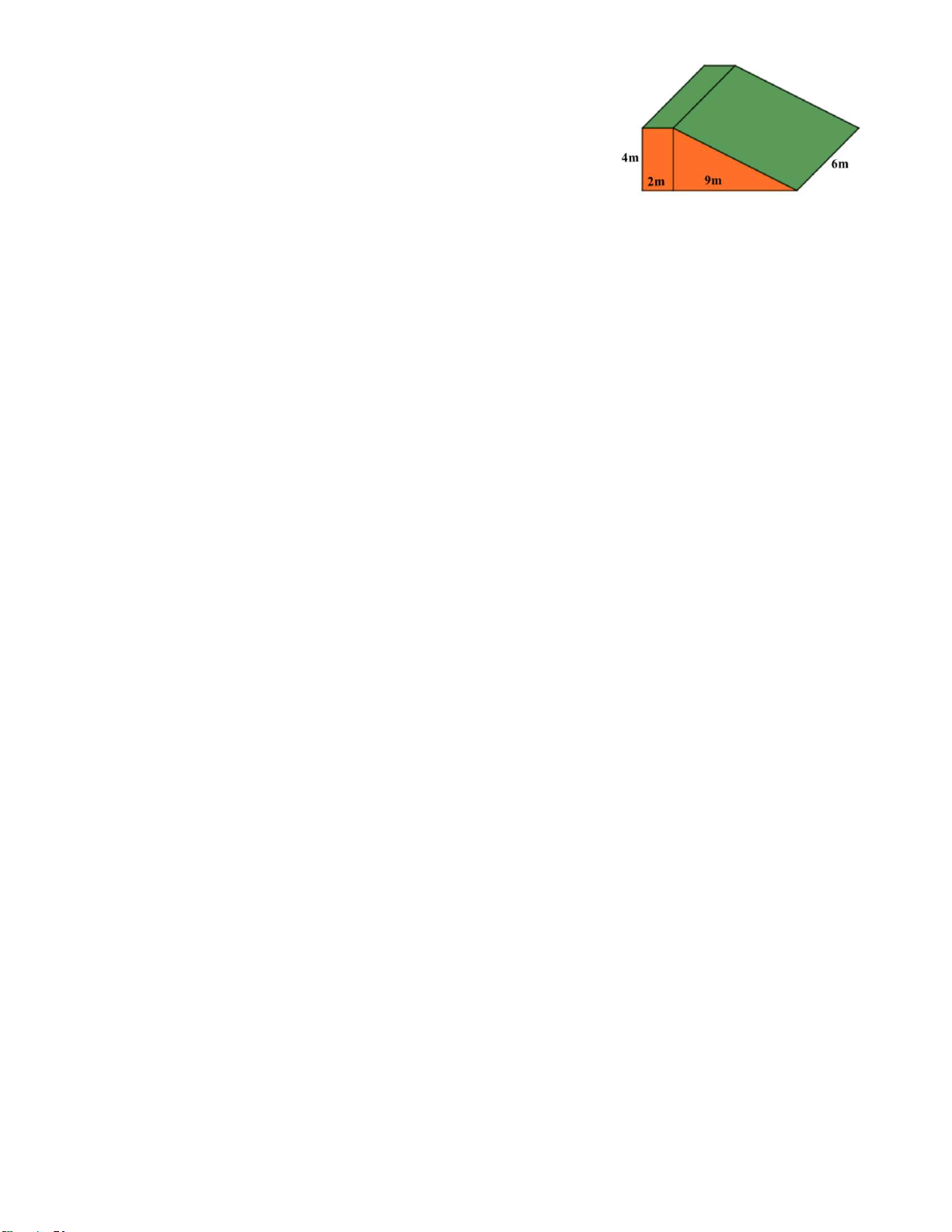 Bài 3. (1,0 điểm) Mô hình một ngôi nhà có kích thước như hình vẽ.