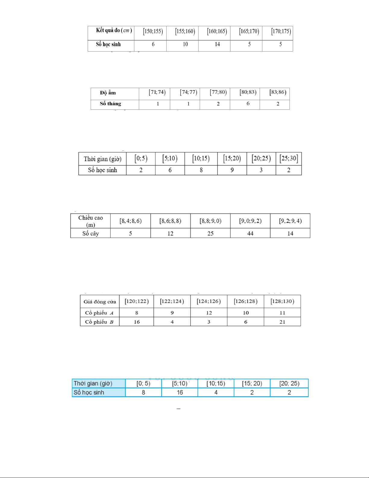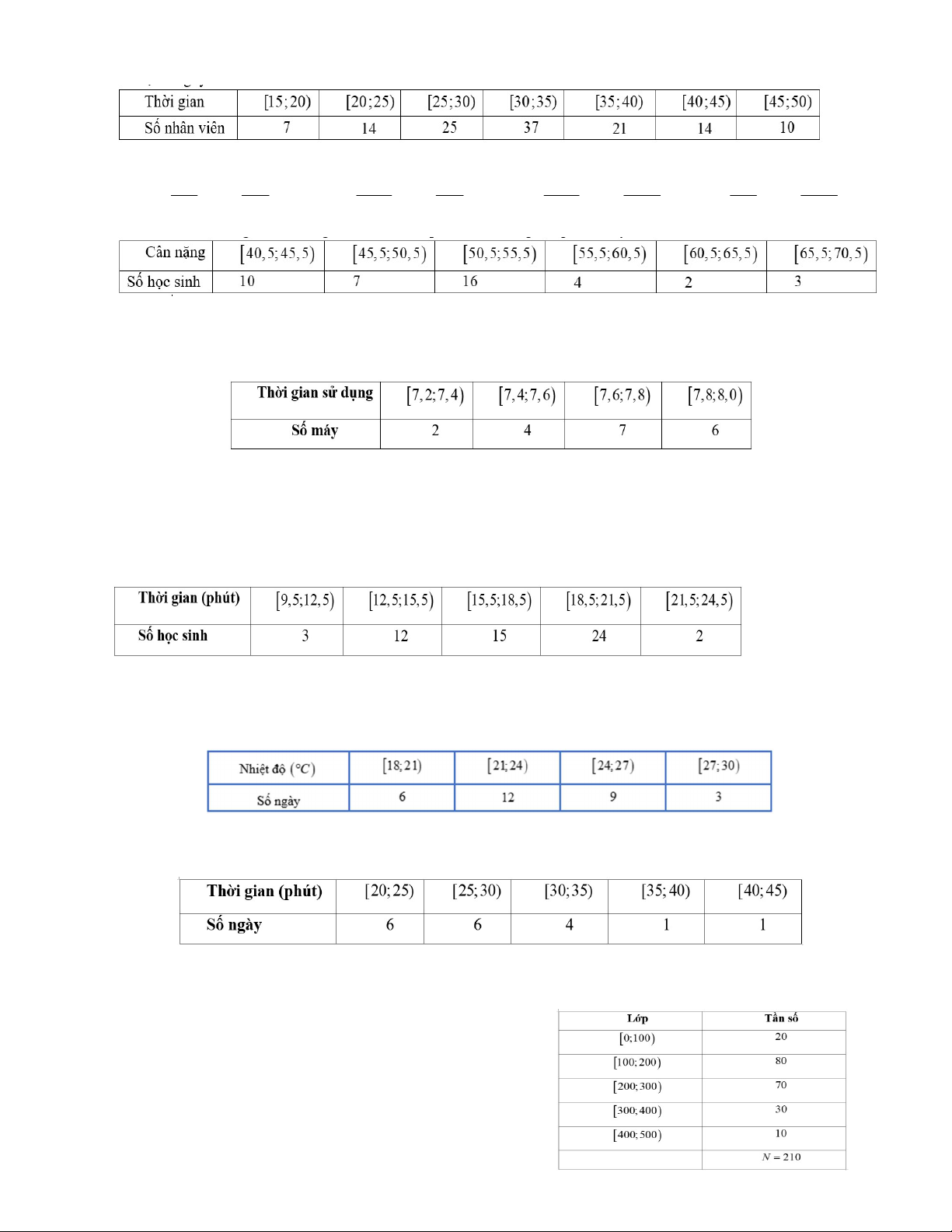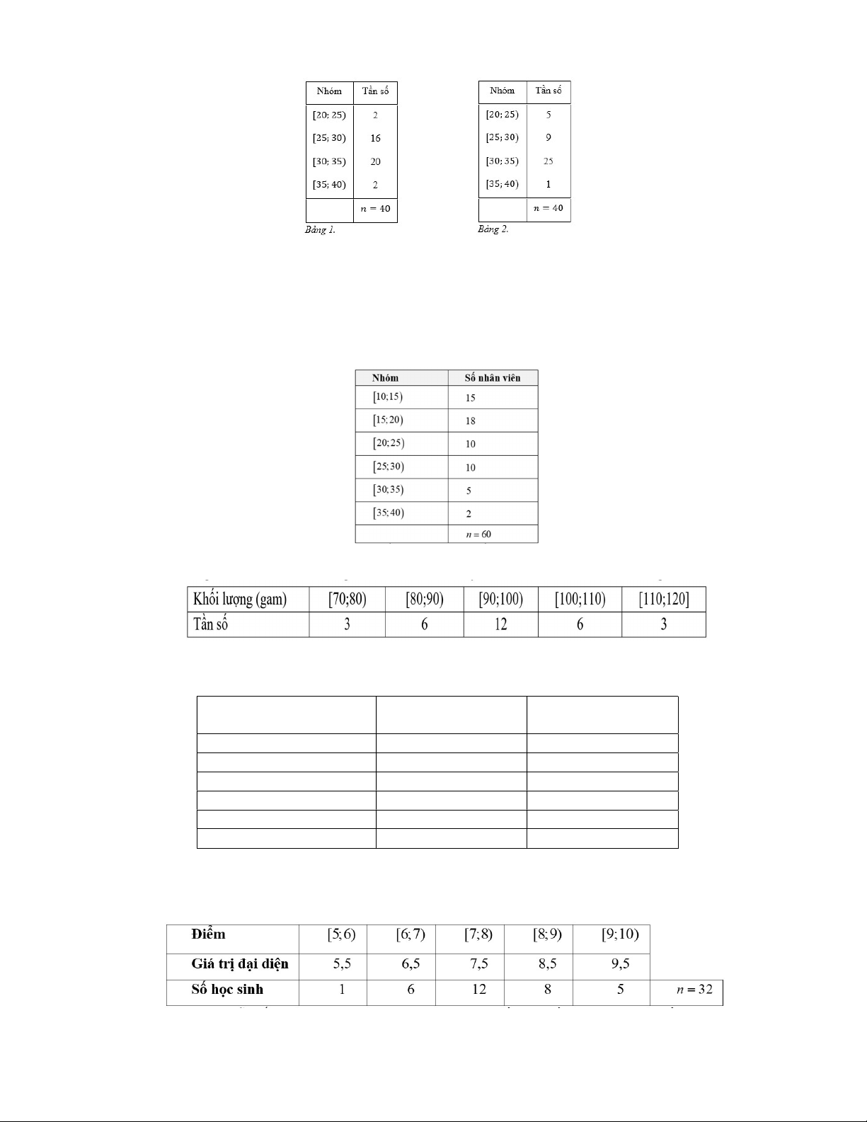 Câu 108. Cho bảng số liệu về khối lượng của 30 củ khoai tây thu hoạch từ một thửa ruộng như dưới đây.