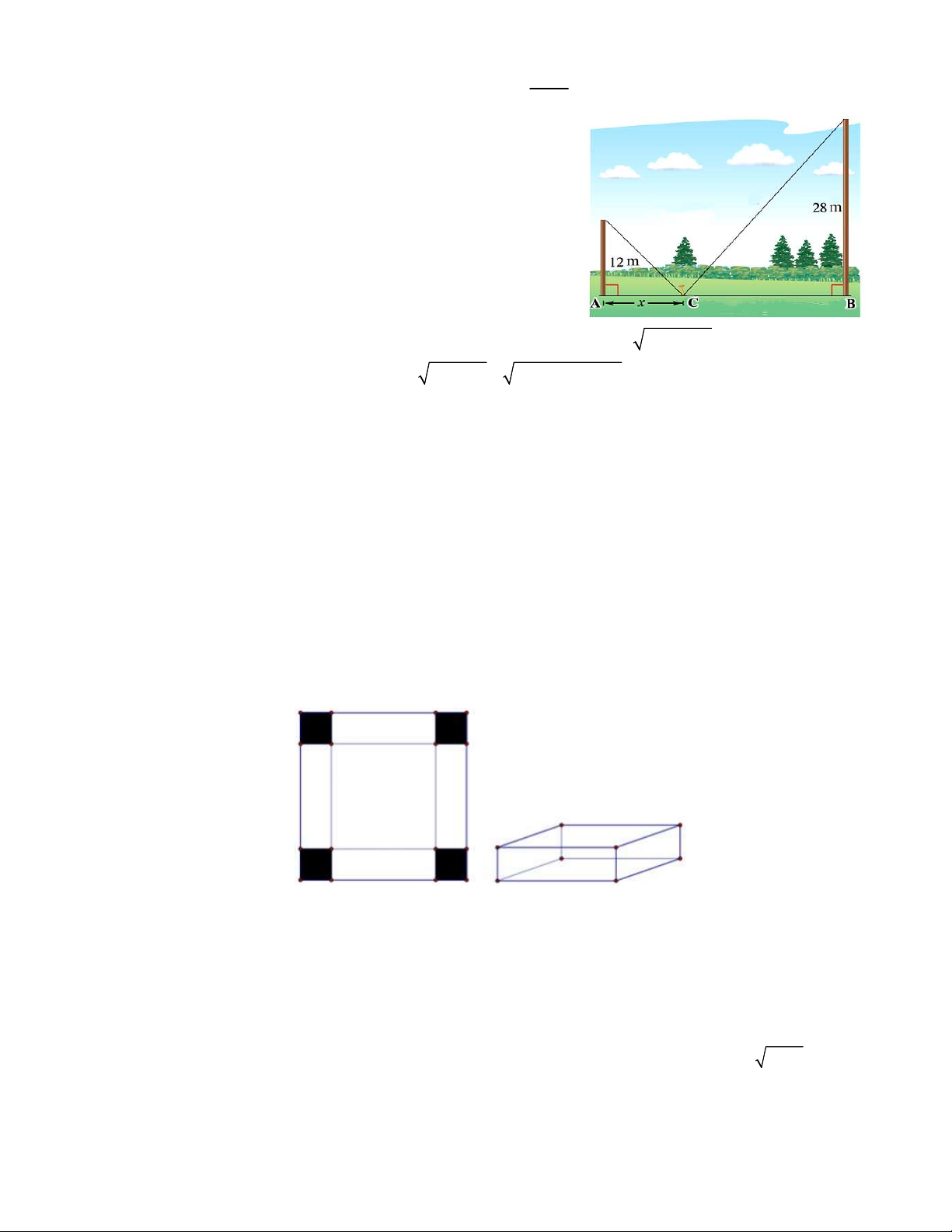 đất đến đỉnh mỗi cột. Gọi x là khoảng cách từ cột cao 12 m đến cọc.