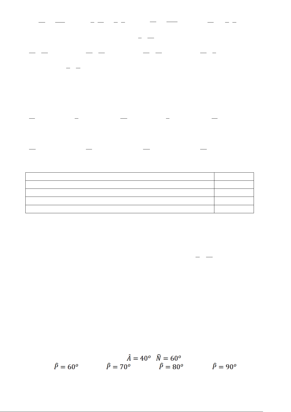 điều kiện nào sau đây để ∆ ABC = ∆ A’B’C’. = A A' = C C ' AC = A’C’ B và C đều đúng Câu 21: Cho A ∆ BC = M ∆ NP . Biết , . Số đo góc P bằng: A. B. C. D. 2