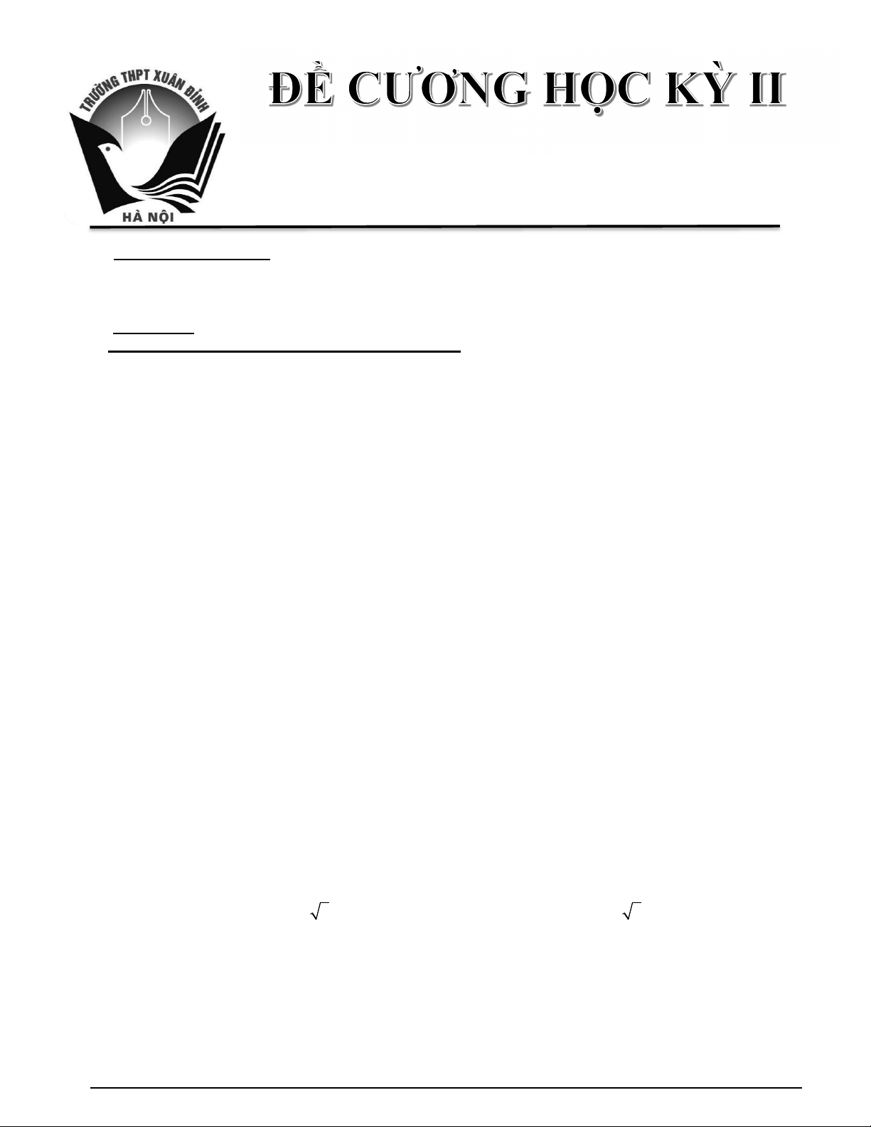 TRƯỜNG THPT XUÂN ĐỈNH NĂM HỌC 2024 – 2025 MÔN: TOÁN - KHỐI: 10 A. KIẾN THỨC ÔN TẬP