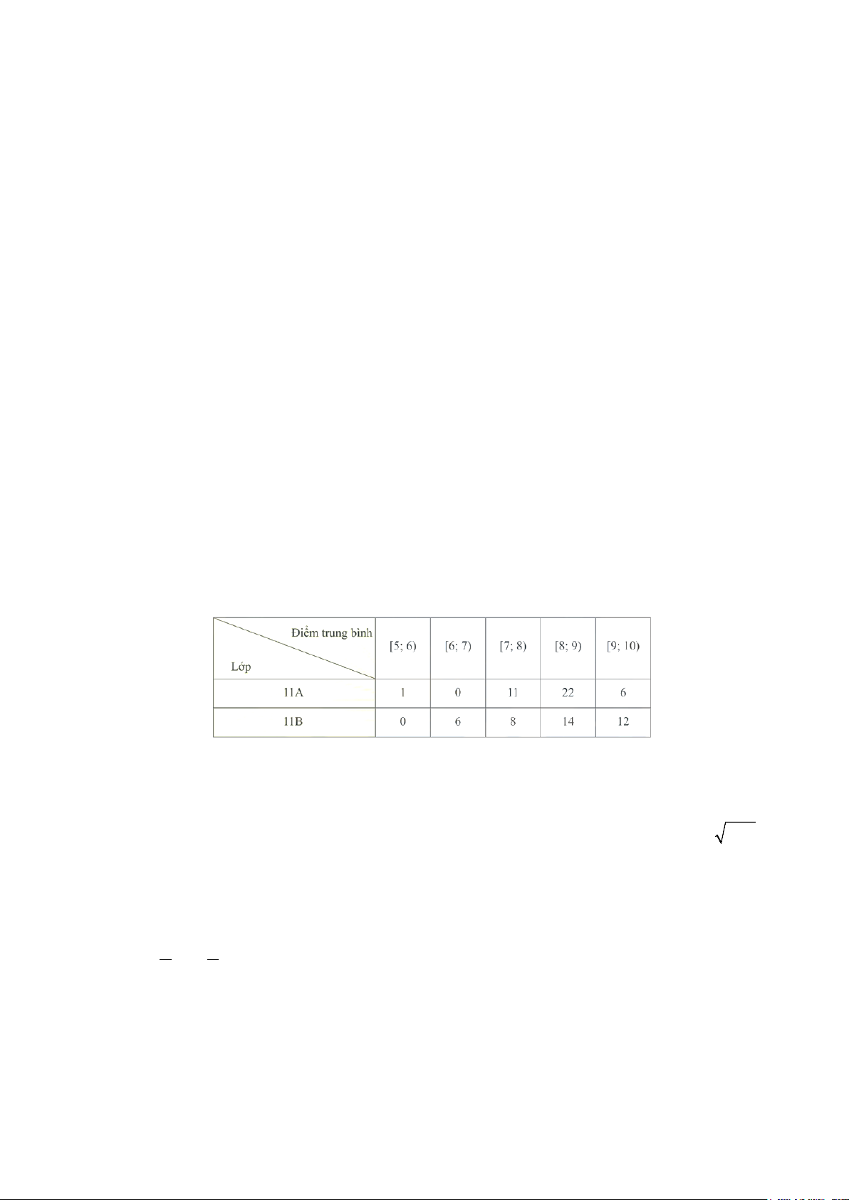 Câu 4: Thầy Tuấn thống kê lại điểm trung bình cuối năm của các học sinh lớp 11A và 11B ở bảng sau: