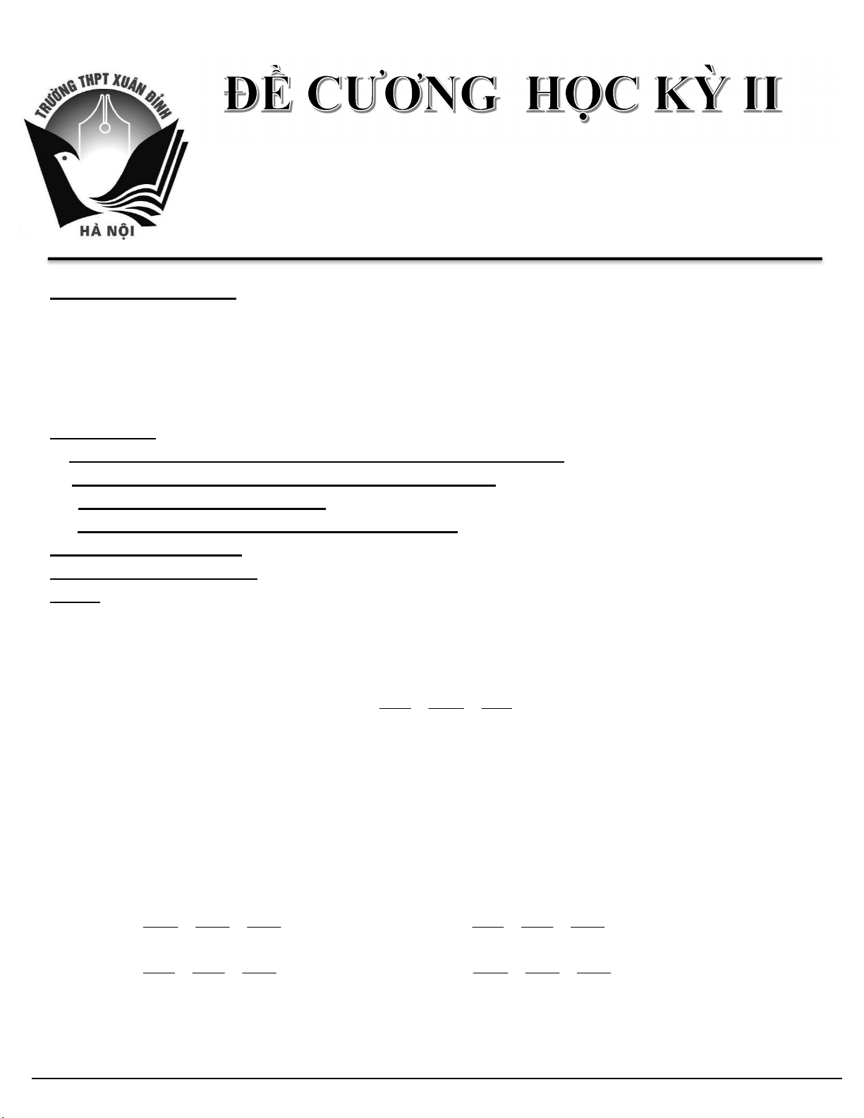 TRƯỜNG THPT XUÂN ĐỈNH NĂM HỌC 2024 – 2025 MÔN: TOÁN - KHỐI: 12 A. KIẾN THỨC ÔN TẬP