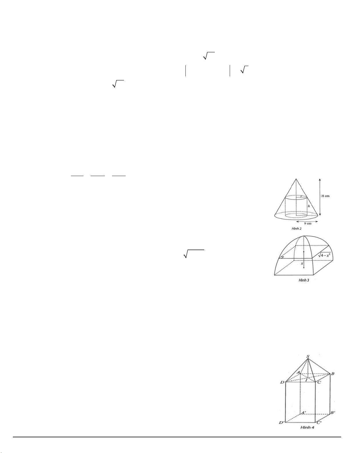 Câu 1: Trong hình bên cho biết một hình trụ bán kính đáy r cm , chiều cao hcm