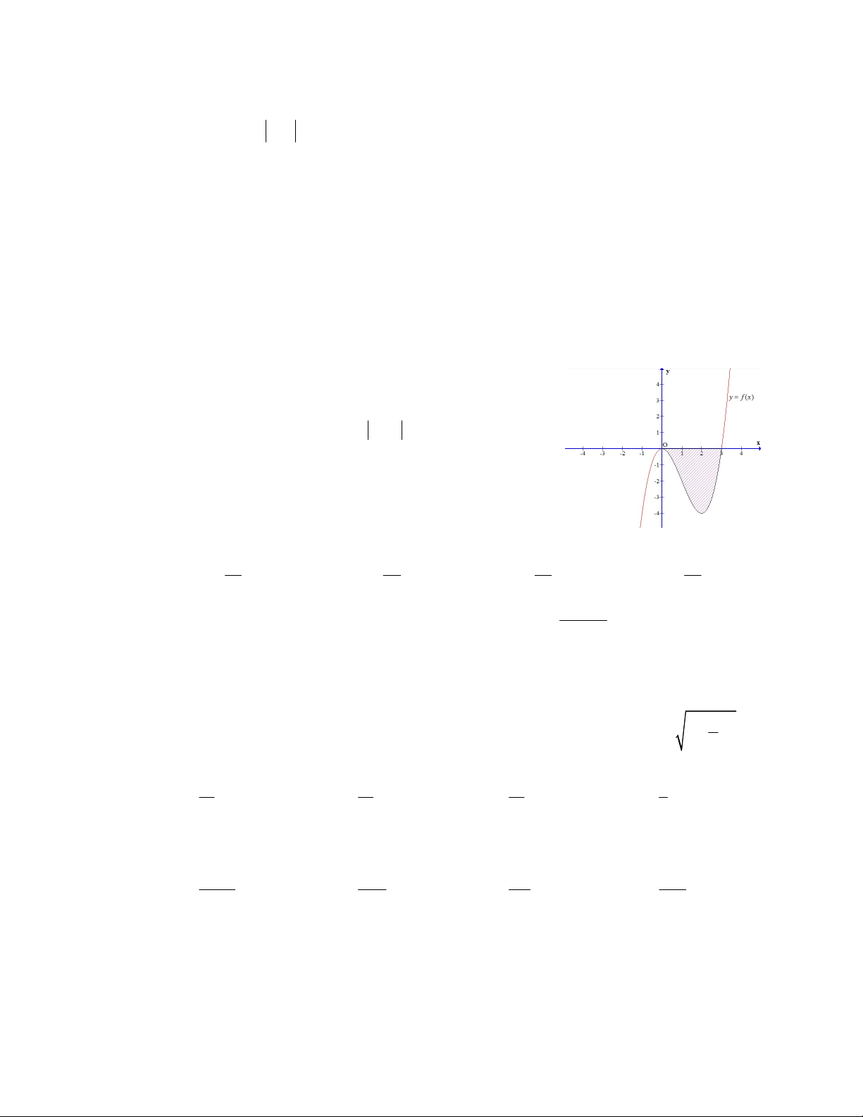 Câu 1: Cho hàm số y f (x) có đồ thị như hình vẽ. Diện tích hình