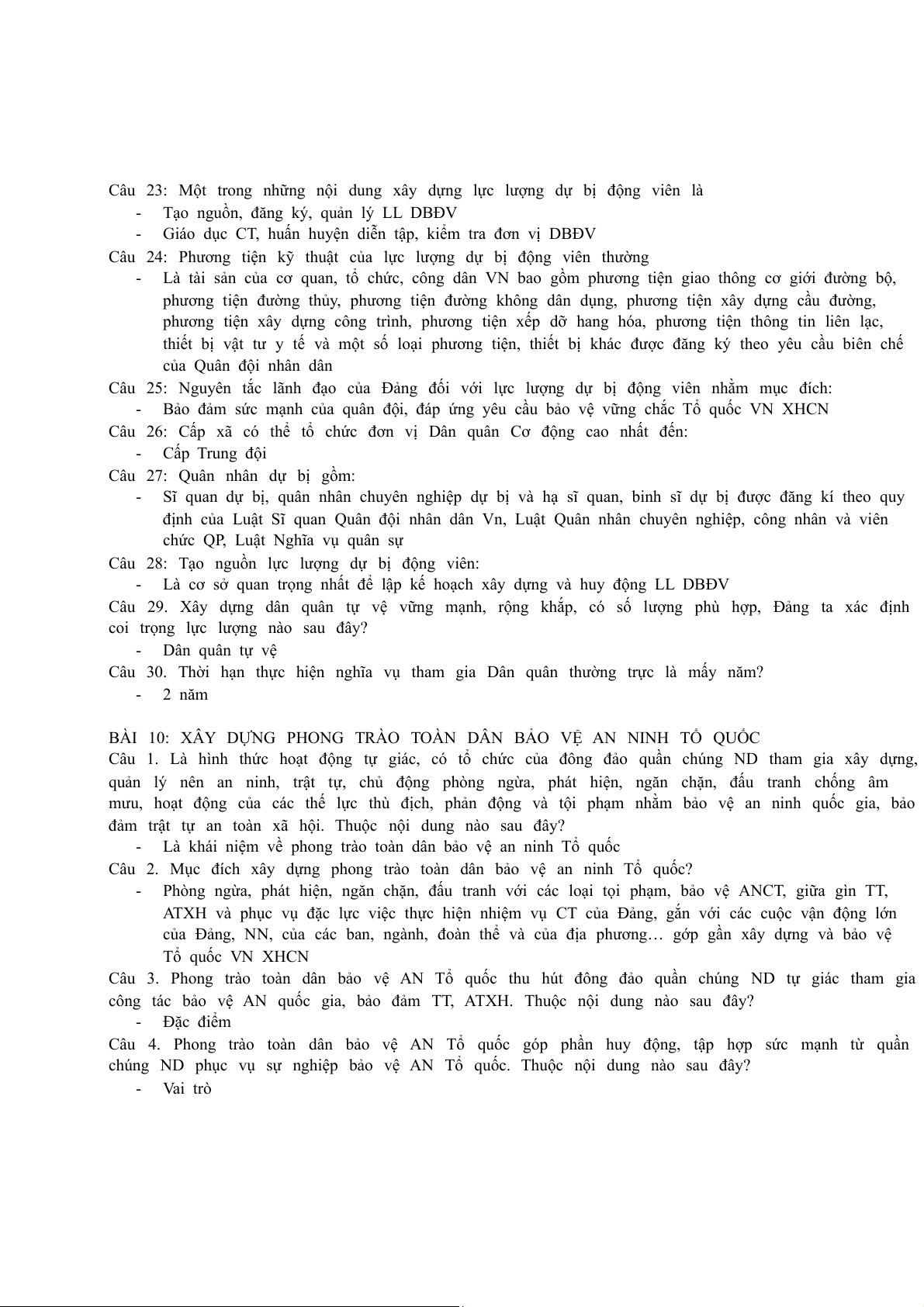 Câu 3. Phong trào toàn dân bảo vệ AN Tổ quốc thu hút đông đảo quần chúng ND tự giác tham gia