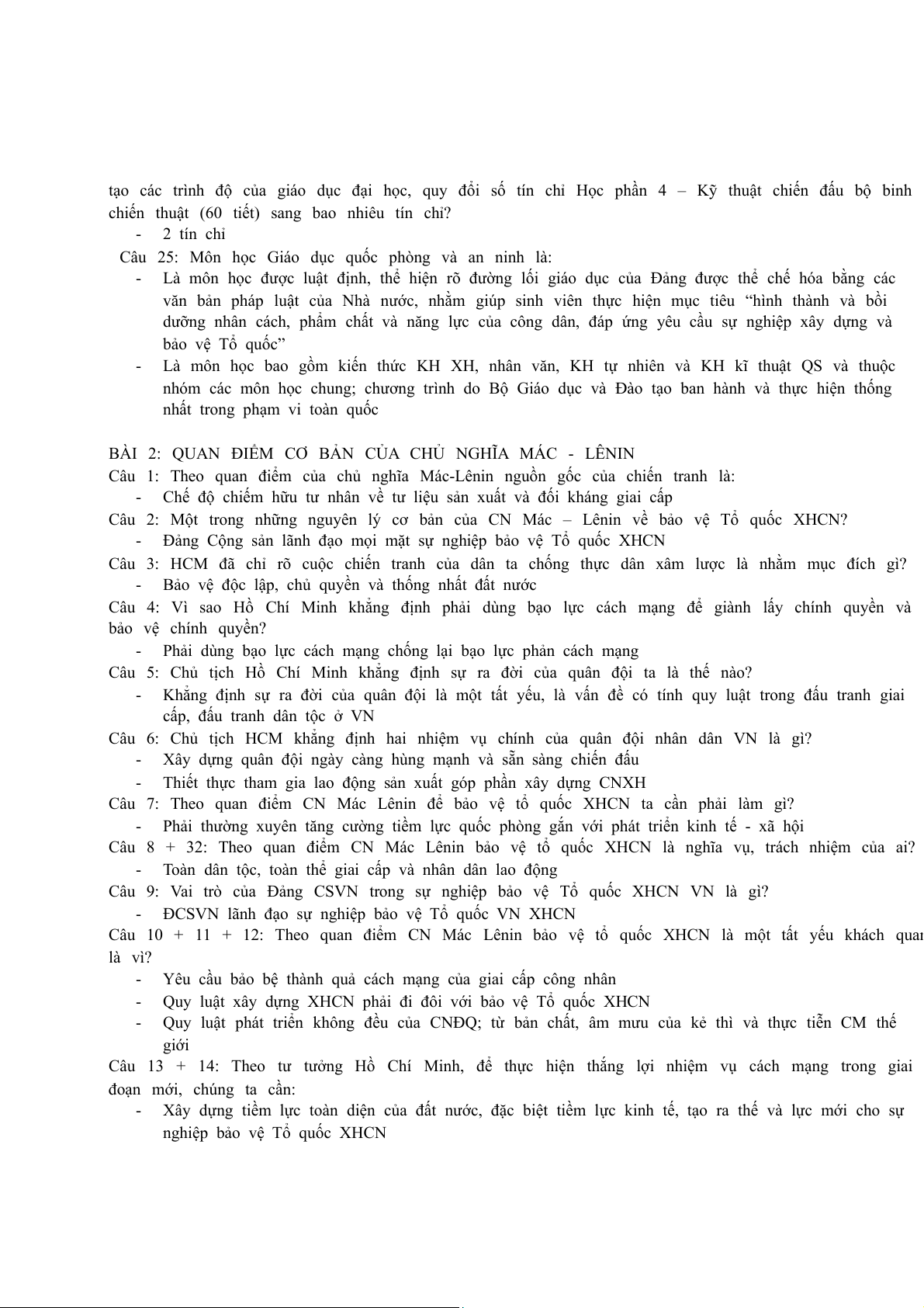 Câu 2: Một trong những nguyên lý cơ bản của CN Mác – Lênin về bảo vệ Tổ quốc XHCN? -