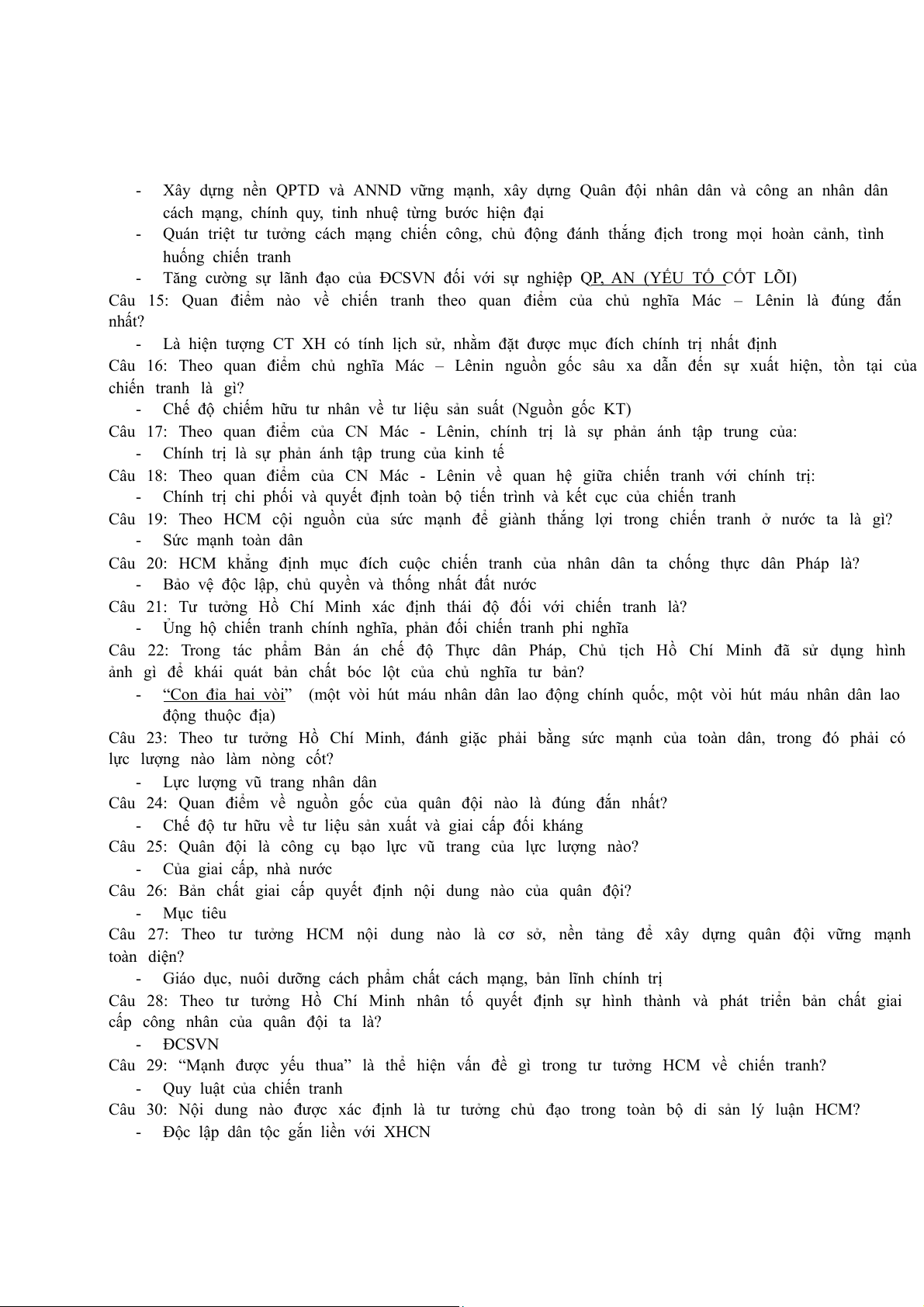 Câu 1: Theo quan điểm của chủ nghĩa Mác-Lênin nguồn gốc của chiến tranh là: -