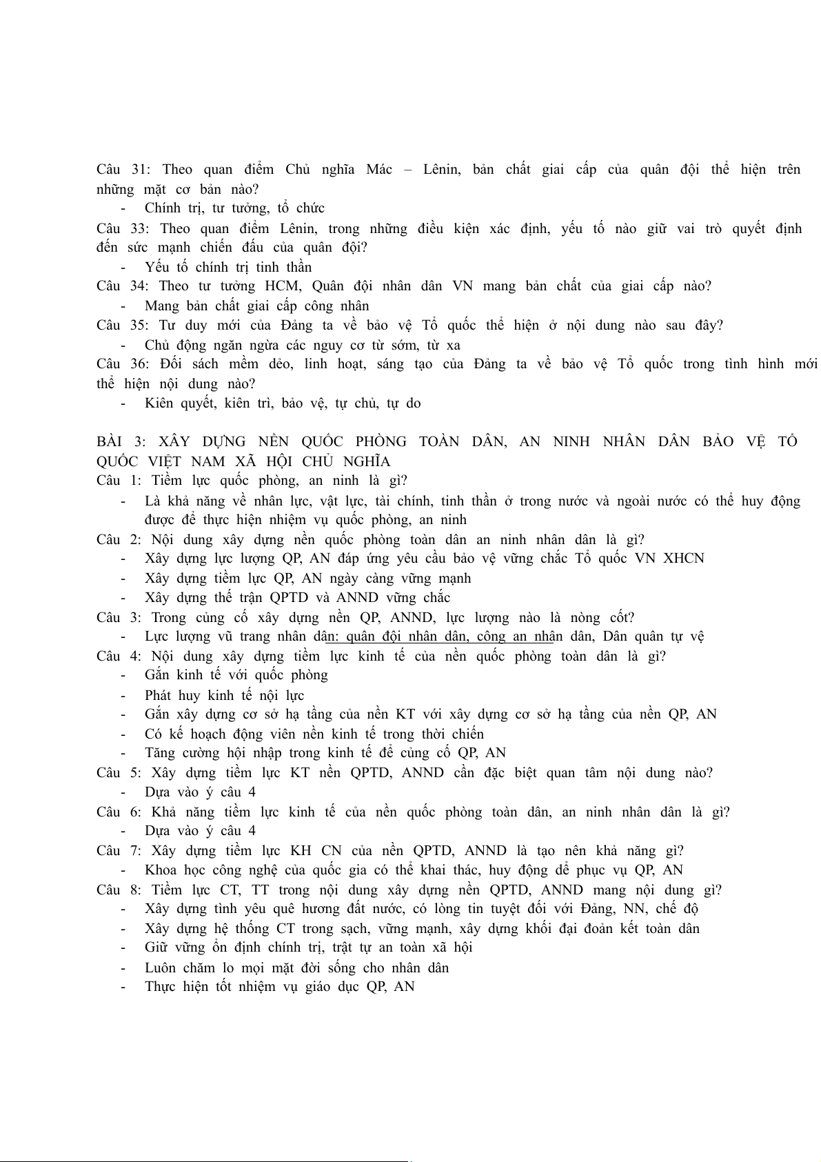 Câu 8 + 32: Theo quan điểm CN Mác Lênin bảo vệ tổ quốc XHCN là nghĩa vụ, trách nhiệm của ai? -