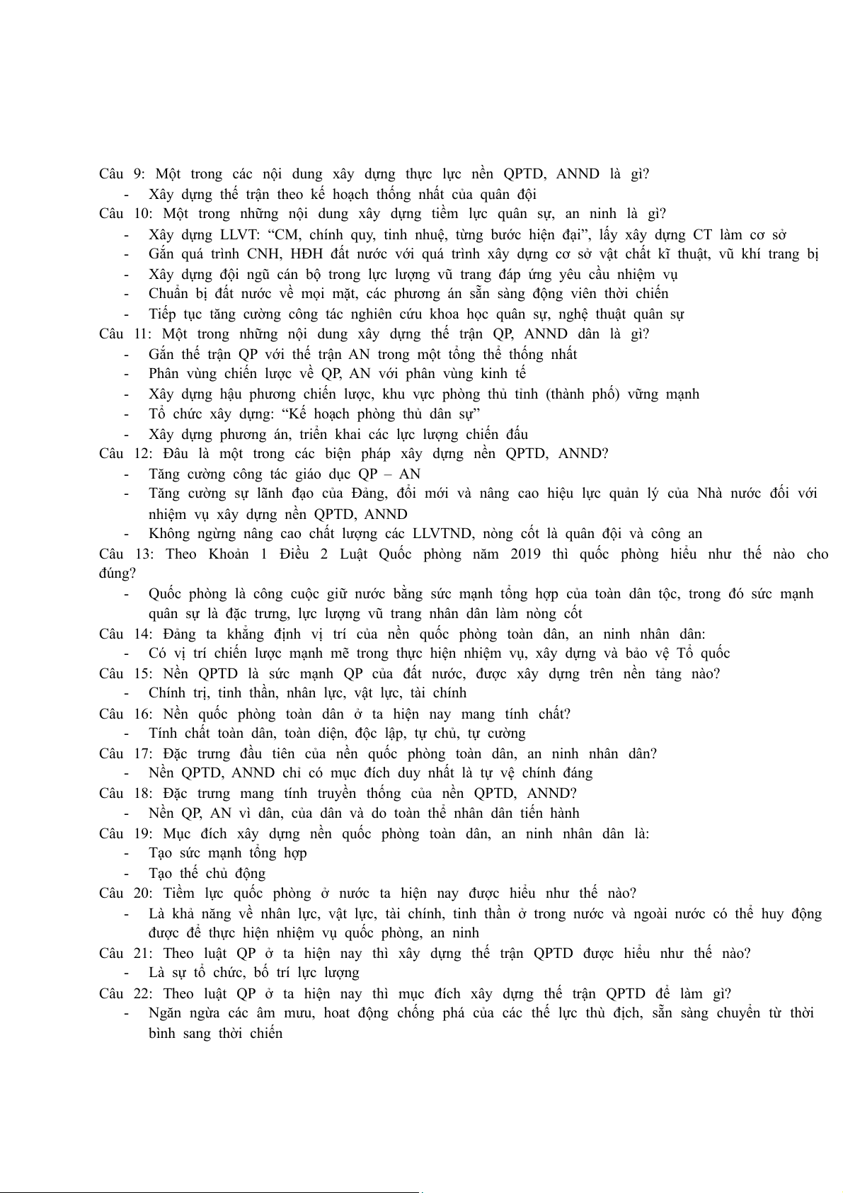 Câu 9. Xây dựng, phát triển phong trào toàn dân bảo vệ AN Tổ quốc là NV của toàn Đảng, toàn