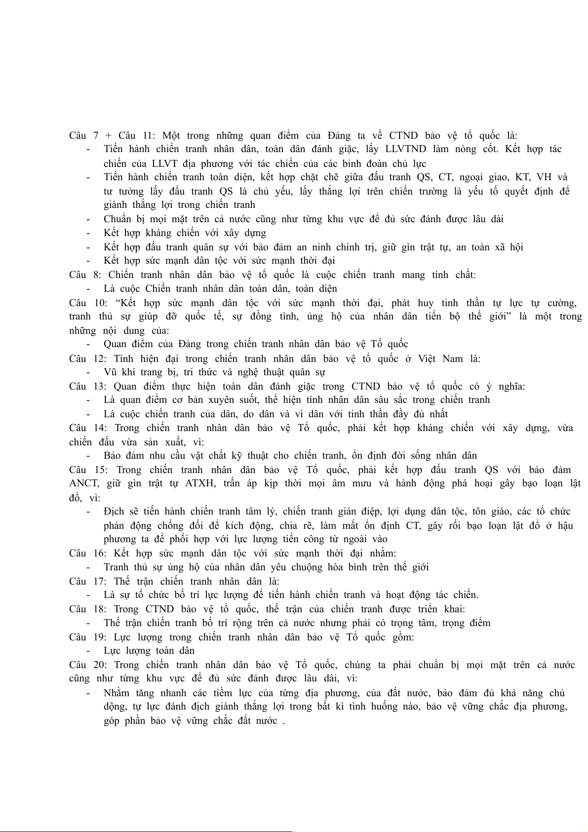 Câu 7: Theo quan điểm CN Mác Lênin để bảo vệ tổ quốc XHCN ta cần phải làm gì? -
