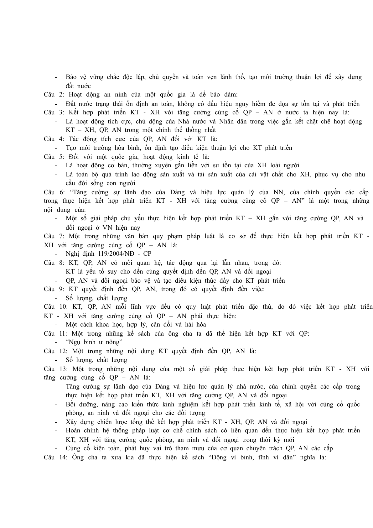 Câu 3: Quá trình nghiên cứu môn học giáo dục quốc phòng và an ninh phải nắm vững và vận dụng