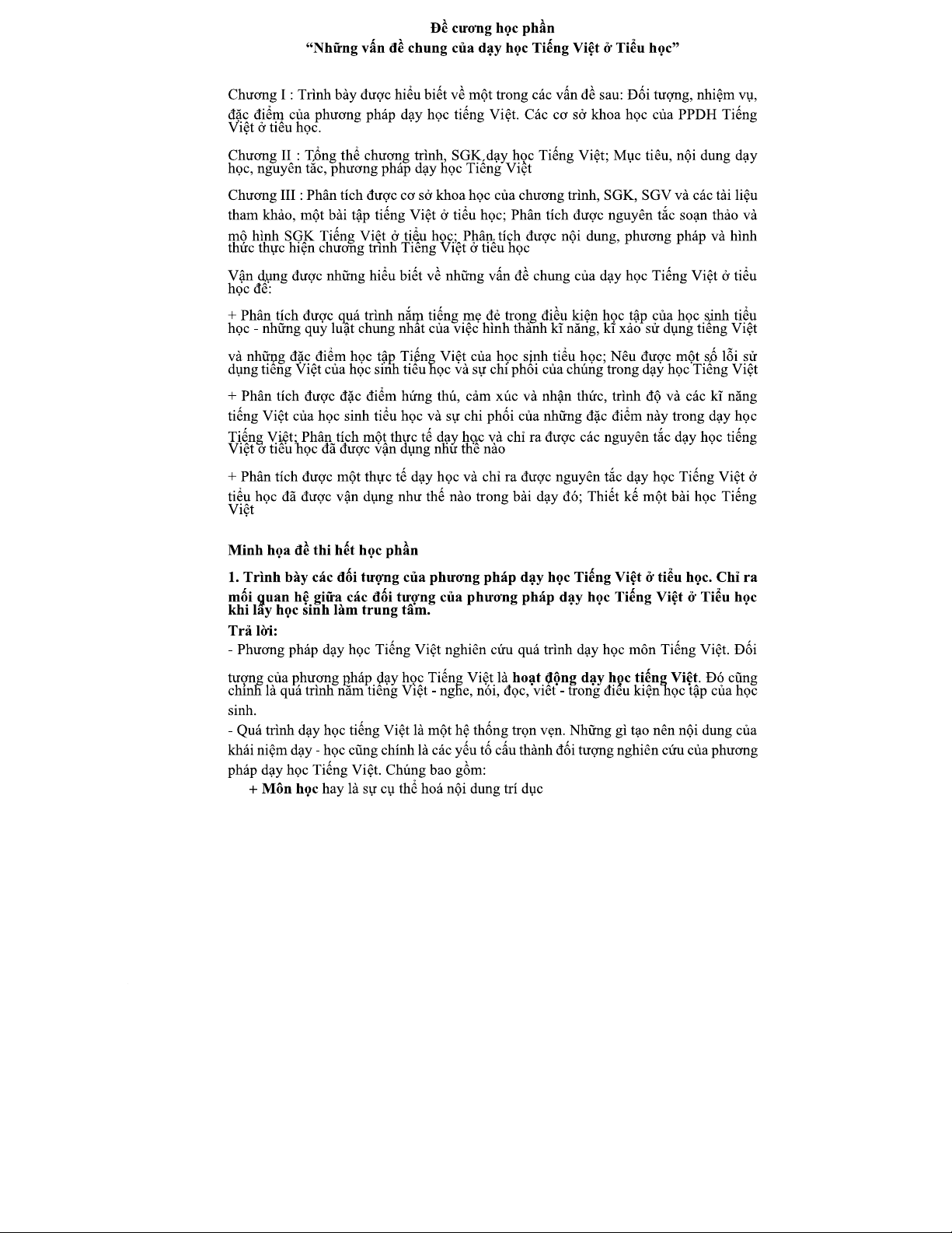 Đề cương Học phần GD Tiếng Việt lớp Tiểu học: Cơ sở và Nguyên tắc Dạy học