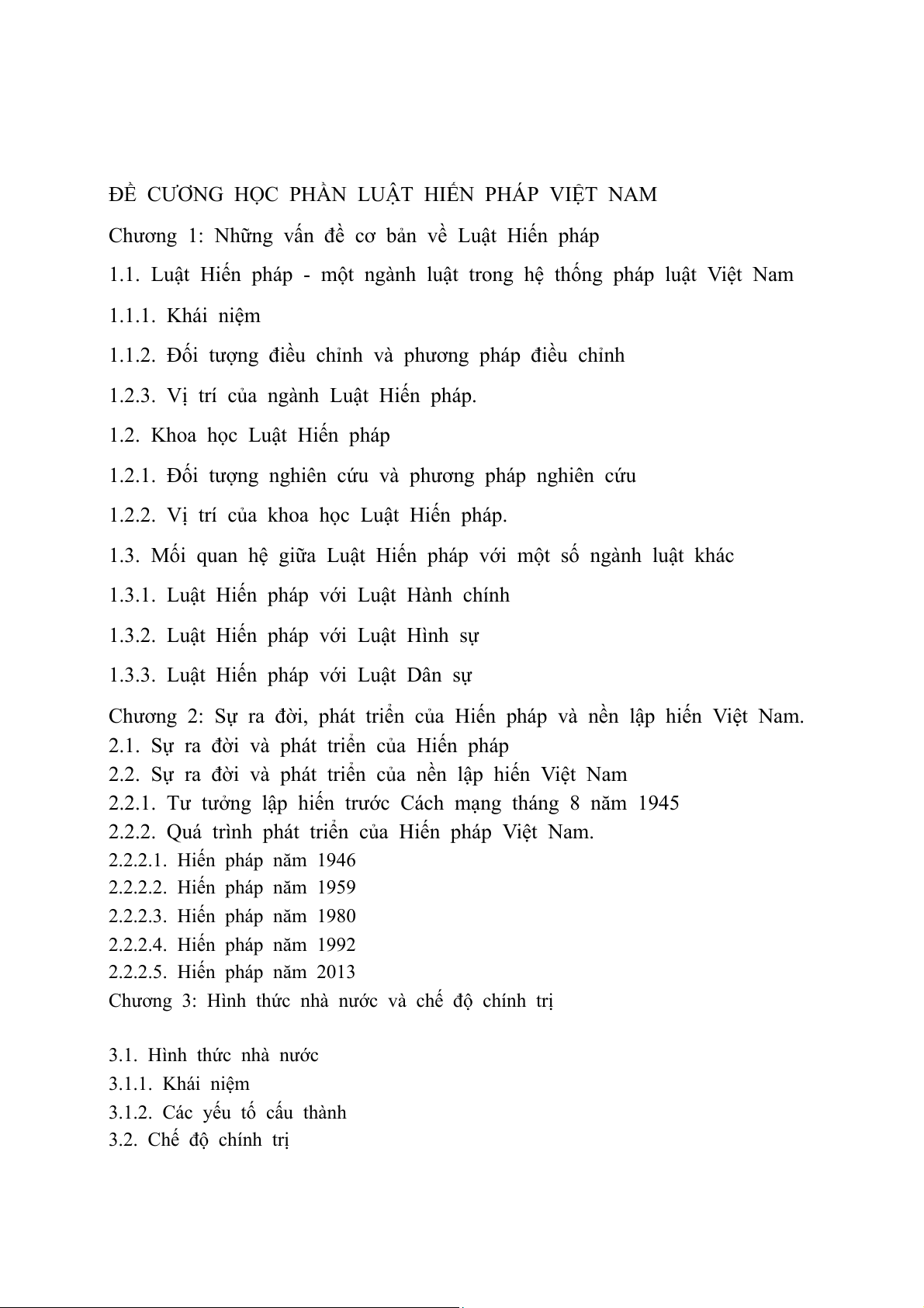 ĐỀ CƯƠNG HỌC PHẦN LUẬT HIẾN PHÁP VIỆT NAM