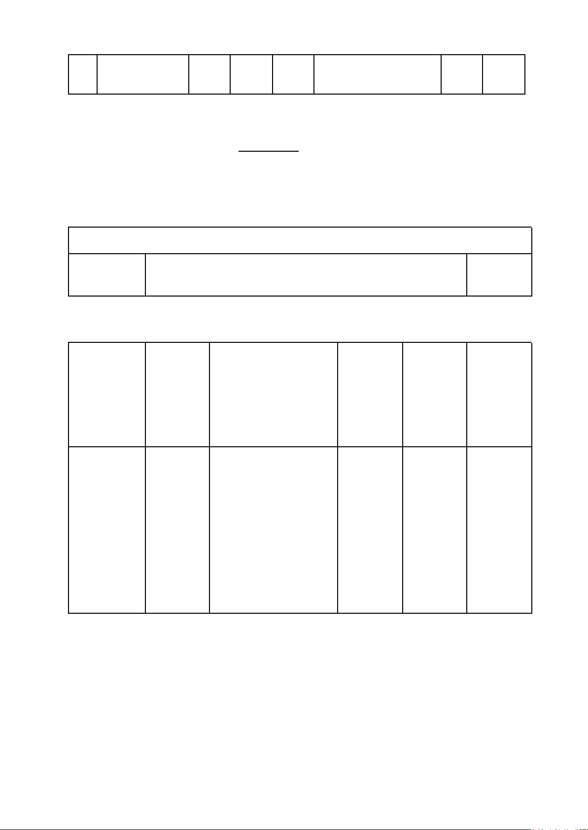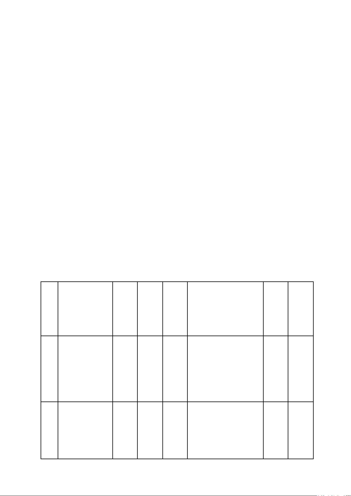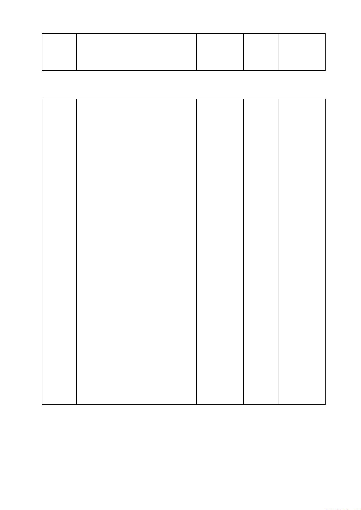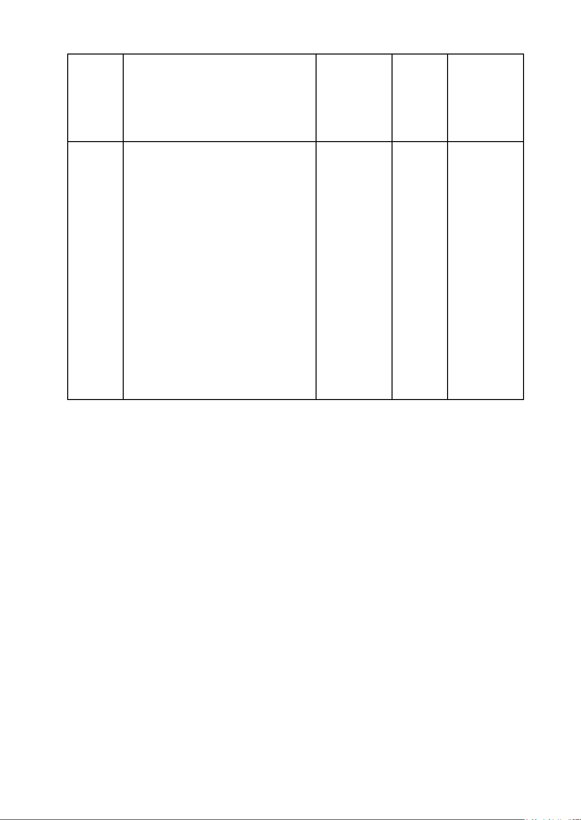 10.5. Bảng mô tả phương thức đánh giá học phần: TT Điểm bộ CLO CLO CLO CLO CLO CLO phận / 1.1 1.2 1.3 CLO 3.1 3.2 Assessment CLO Component 2.1 2.2 2.3 1 Điểm chuyên X X X X X X X X cần (20%) / Attendance & Participatio n (20%) 2 Điểm kiểm X X X X X tra giữa kỳ (30%) / Midterm Assessment (30%) 2.1 Bài kiểm tra X X X X X lần 1 / Test 1 3 Điểm thi kết