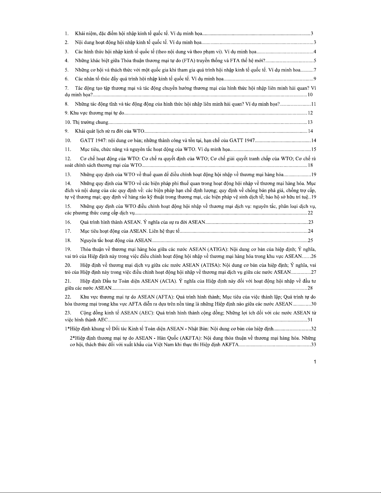 ĐỀ CƯƠNG HỘI NHẬP KINH TẾ QUỐC TẾ - TỔNG QUAN VÀ PHÂN TÍCH
