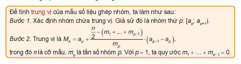 khái niệm & công thức về trung vị của mẫu số liệu ghép nhóm.