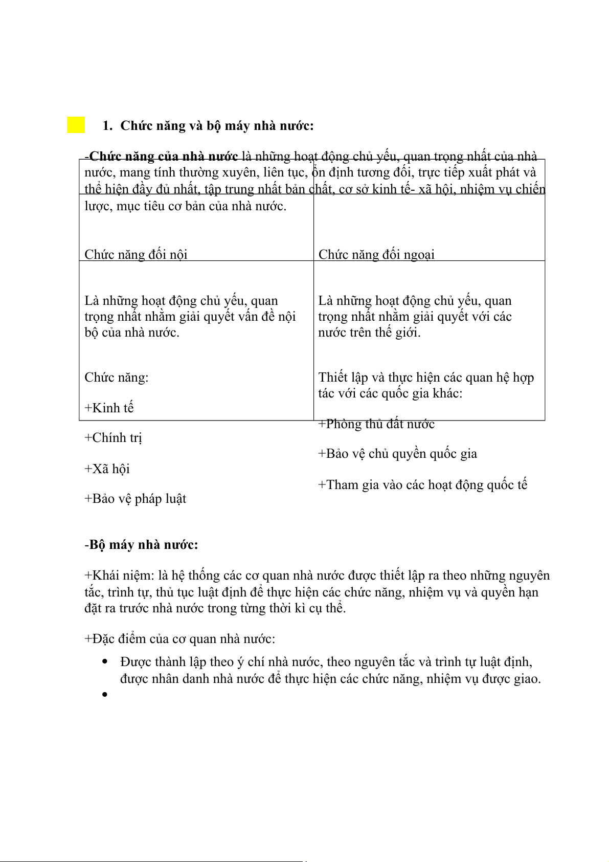 1. Chức năng và bộ máy nhà nước: