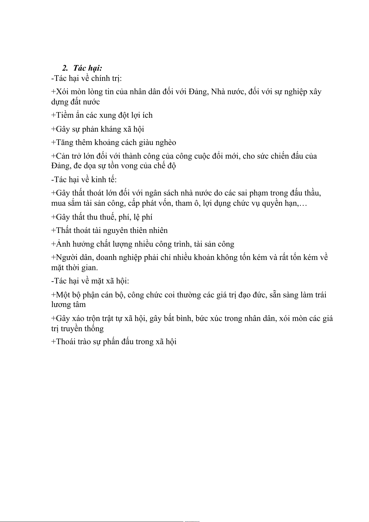 phát từ động cơ vụ lợi thì hành vi đó không là hành vi tham nhũng 2. Tác hại: -Tác hại về chính trị: