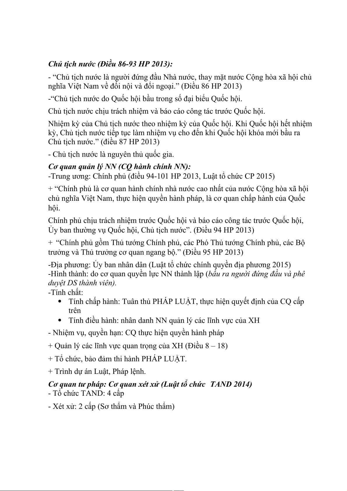 Quyền lực NN được phân chia thành 3 nhánh: lập pháp, hành pháp, tư pháp. o