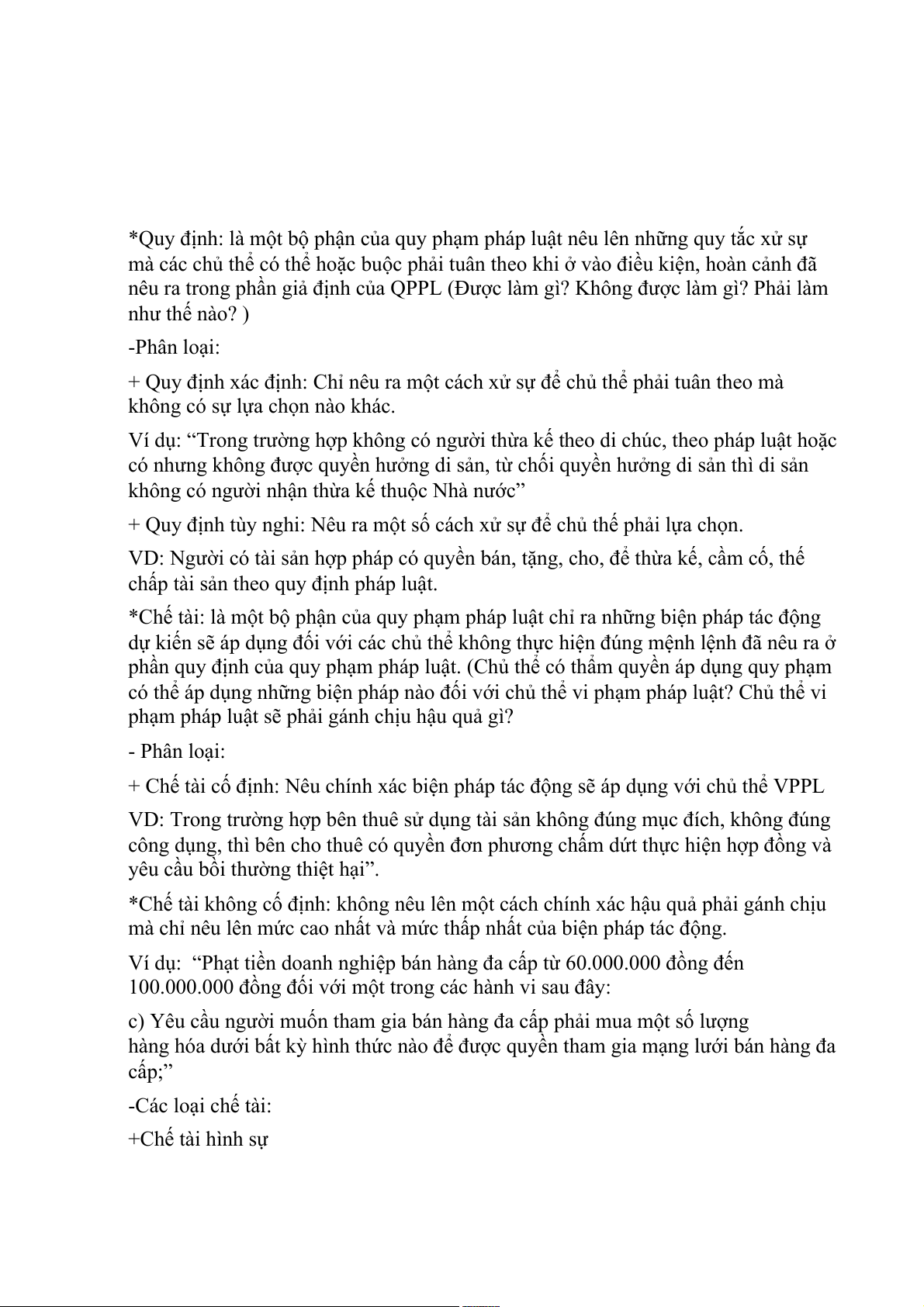 hàng hóa dưới bất kỳ hình thức nào để được quyền tham gia mạng lưới bán hàng đa cấp;” -Các loại chế tài: +Chế tài hình sự + Chế tài hành chính +Chế tài kỷ luật +Chế tài dân sự