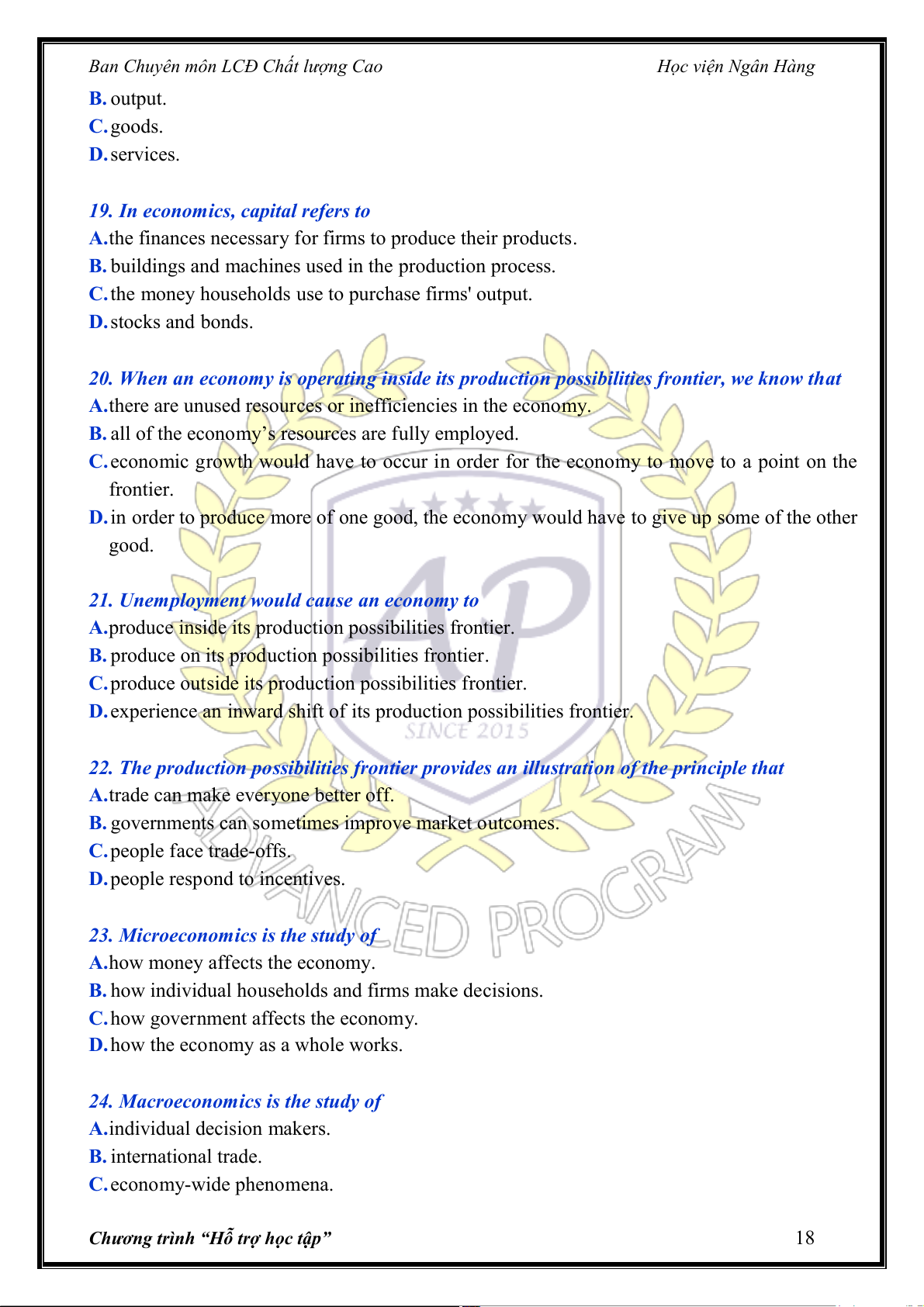 Học viện Ngân Hàng B. output. C. goods. D. services.