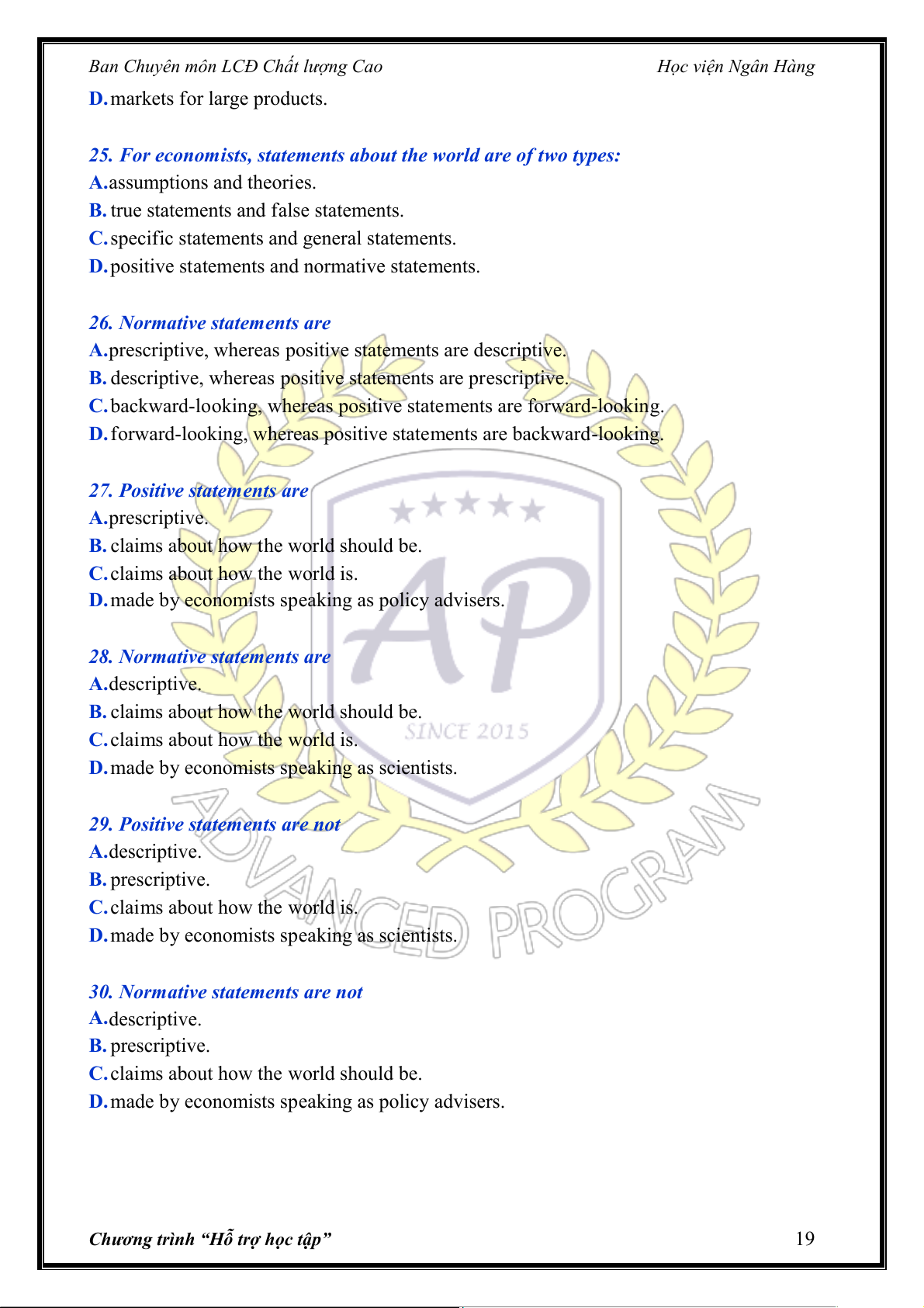 29. Positive statements are not A. descriptive. B. prescriptive.