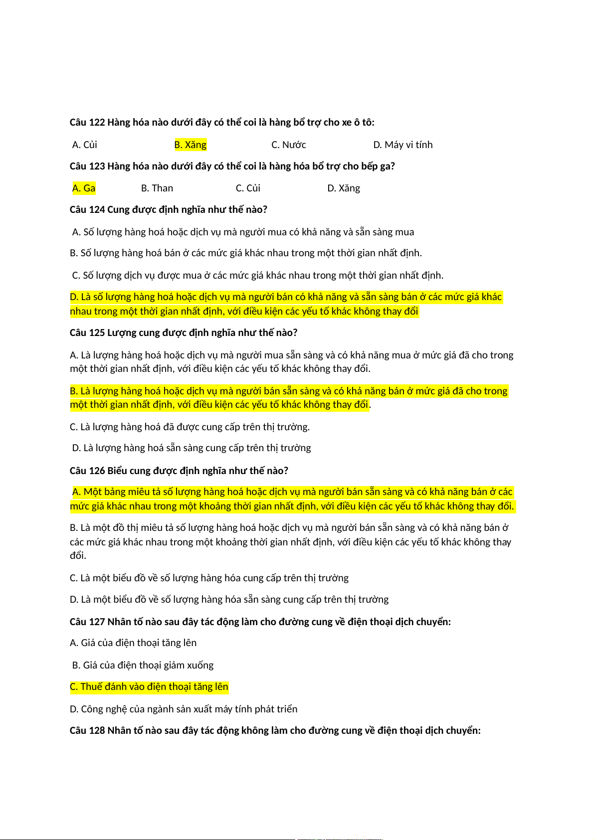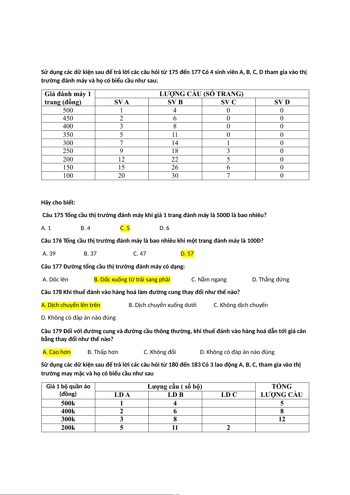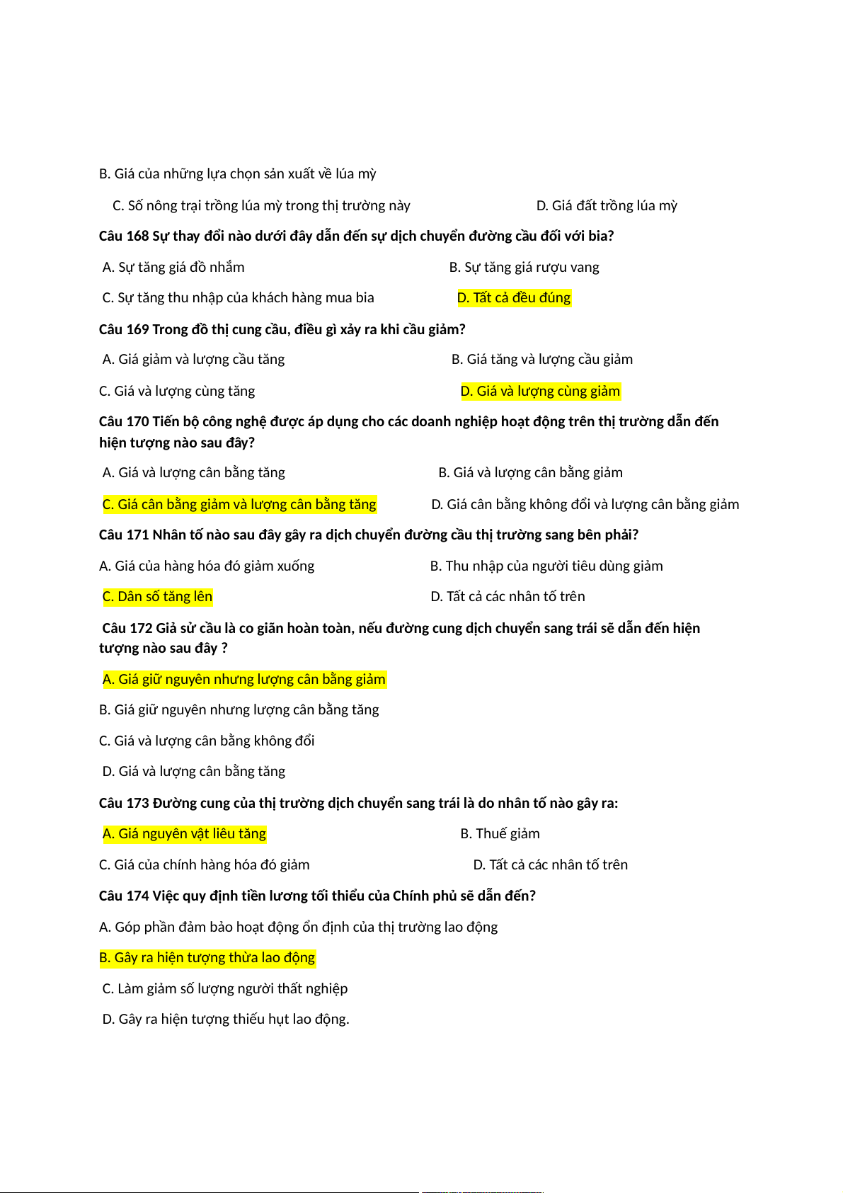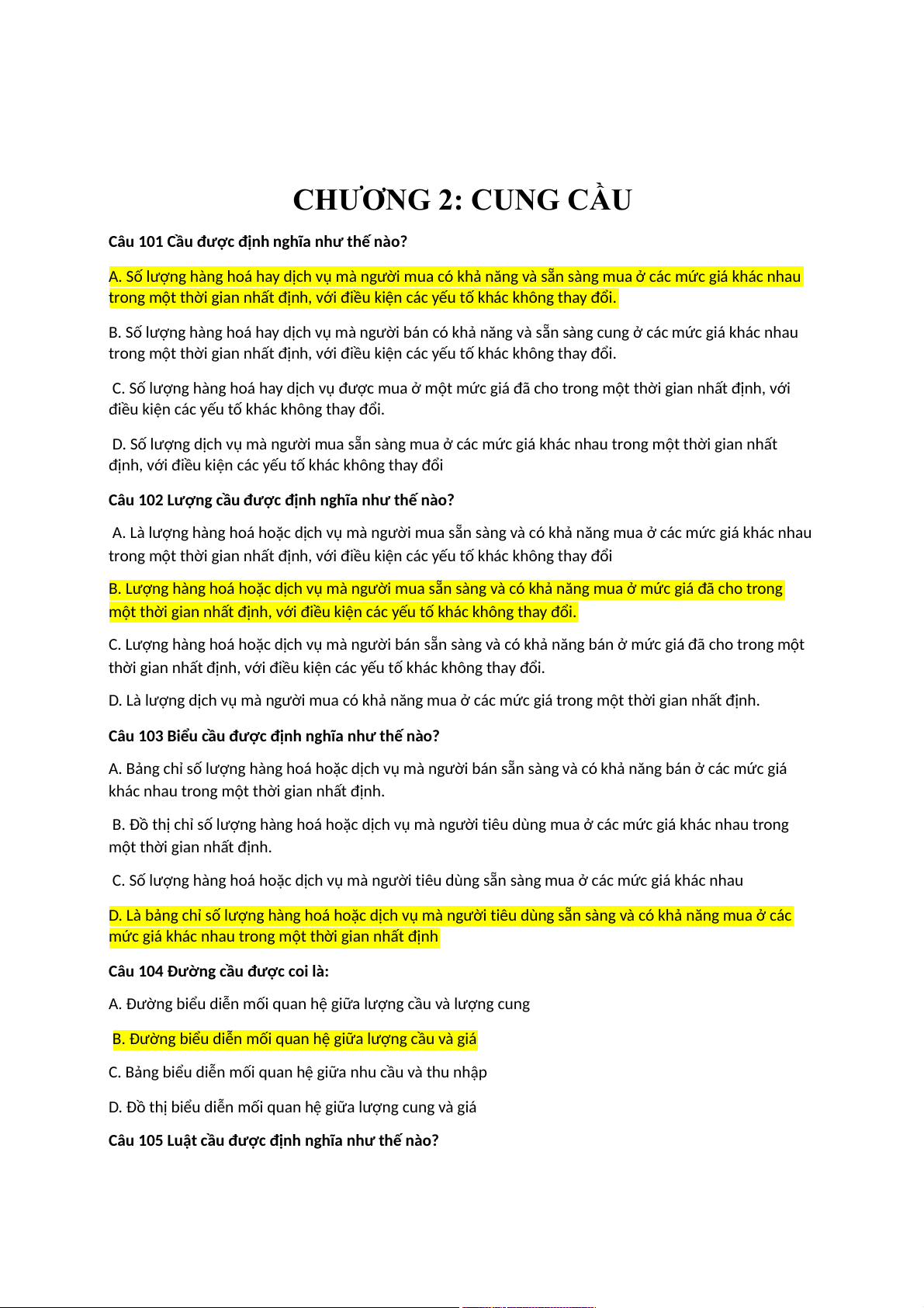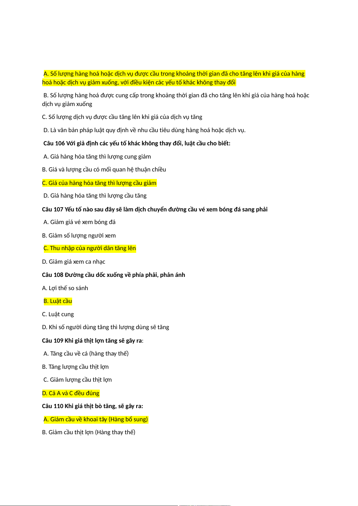 Câu 108 Đường cầu dốc xuống về phía phải, phản ánh A. Lợi thế so sánh B. Luật cầu C. Luật cung