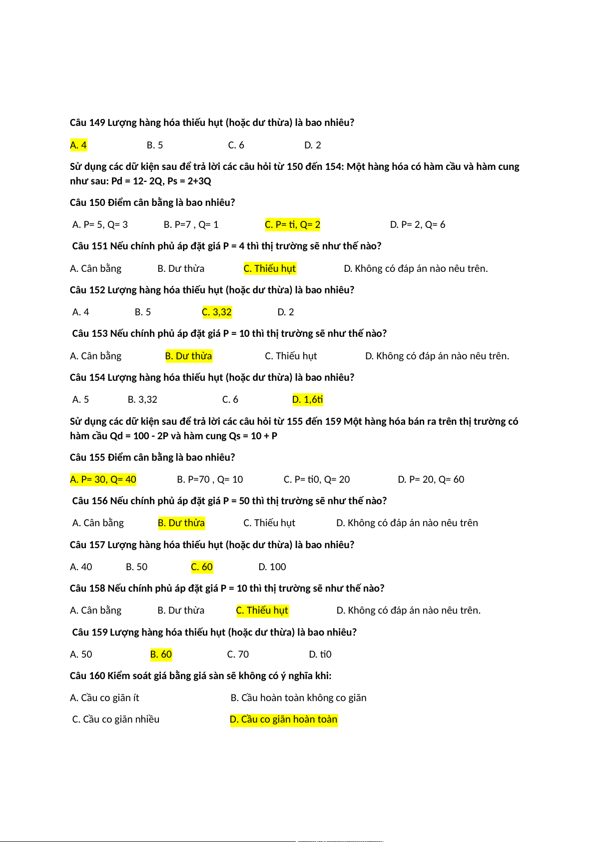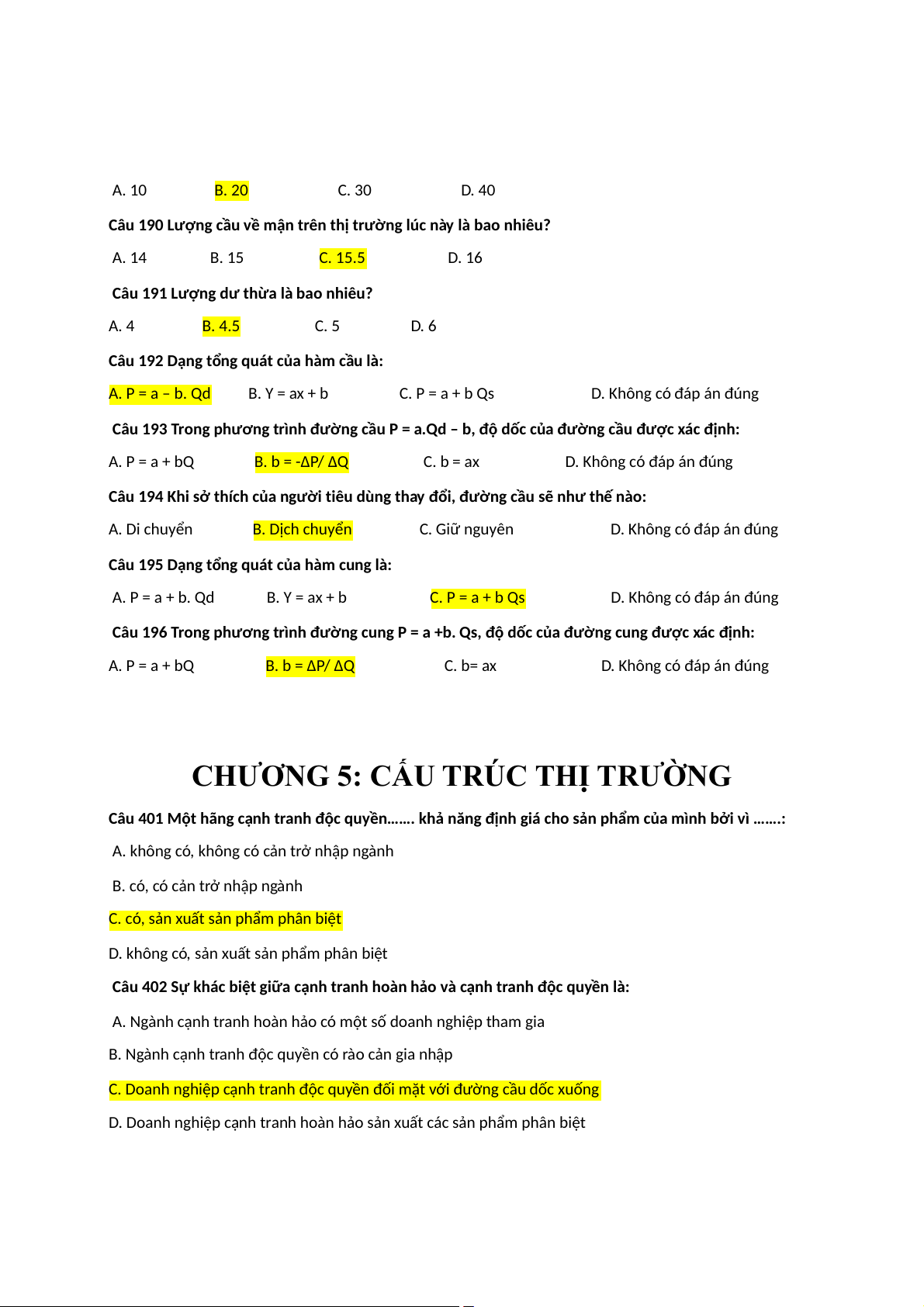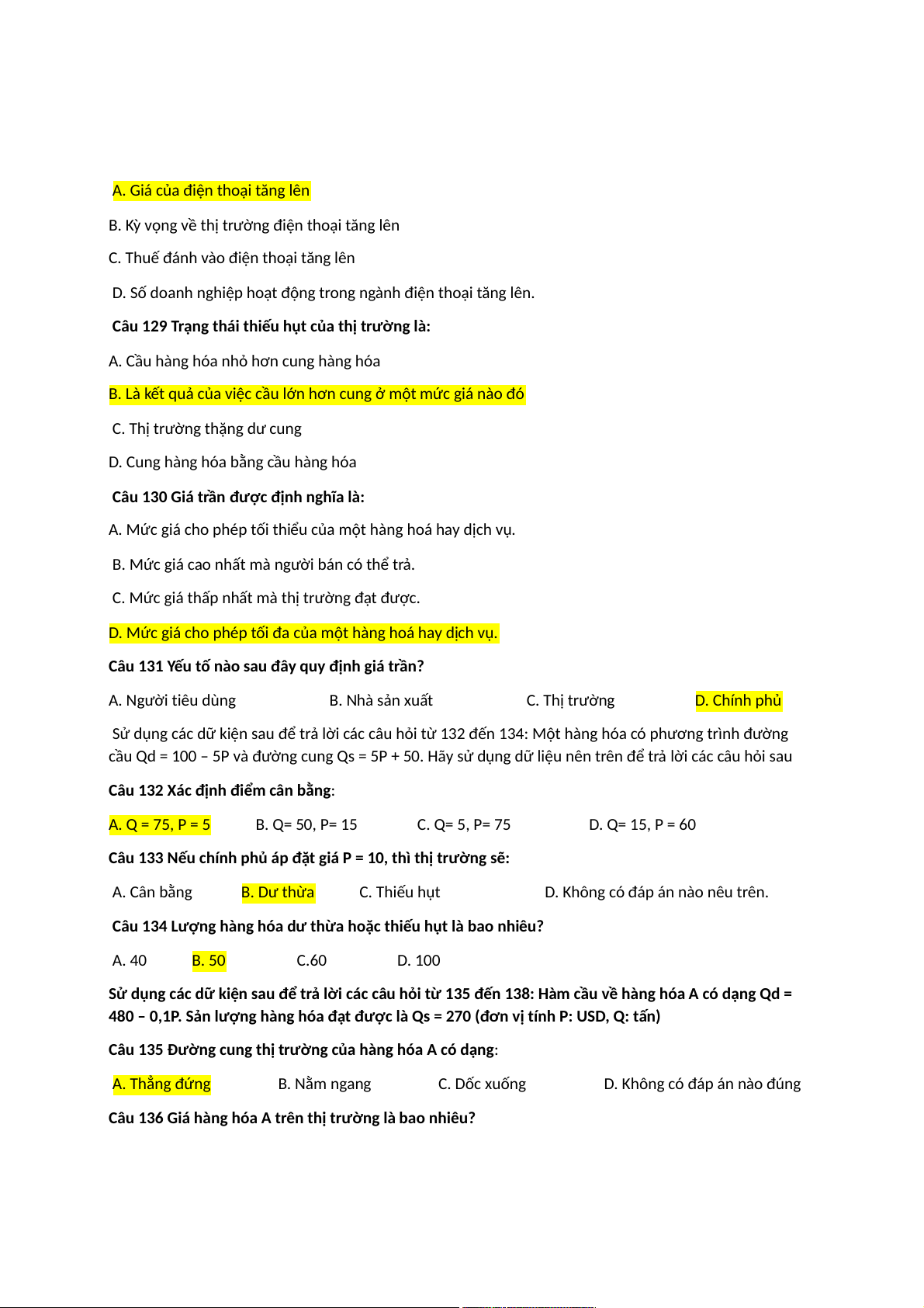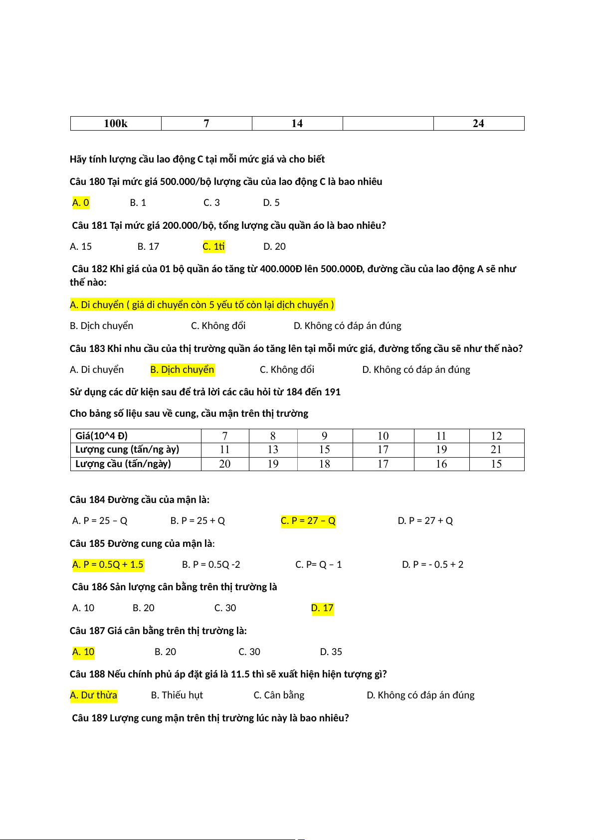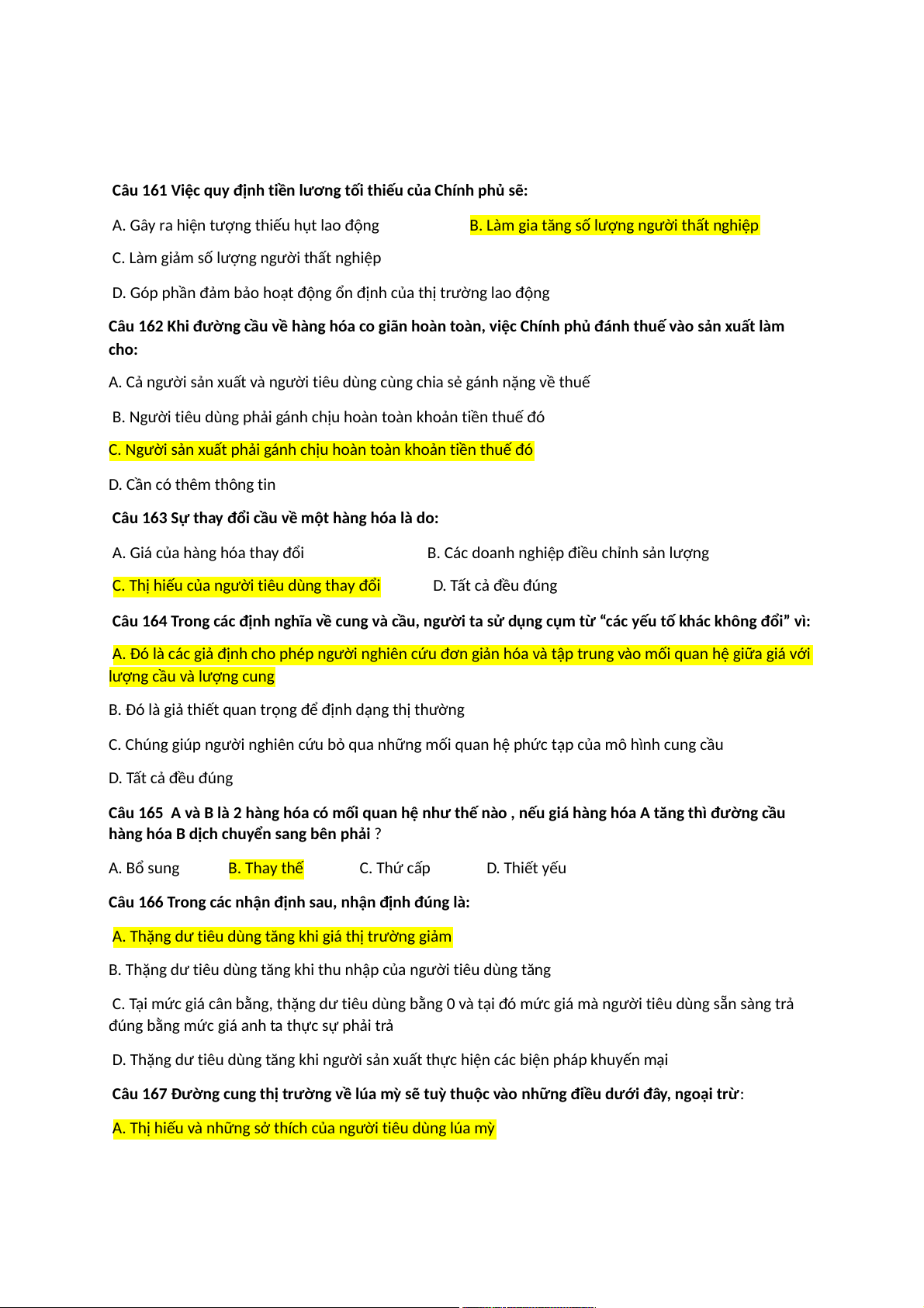 Câu 108 Đường cầu dốc xuống về phía phải, phản ánh A. Lợi thế so sánh B. Luật cầu C. Luật cung