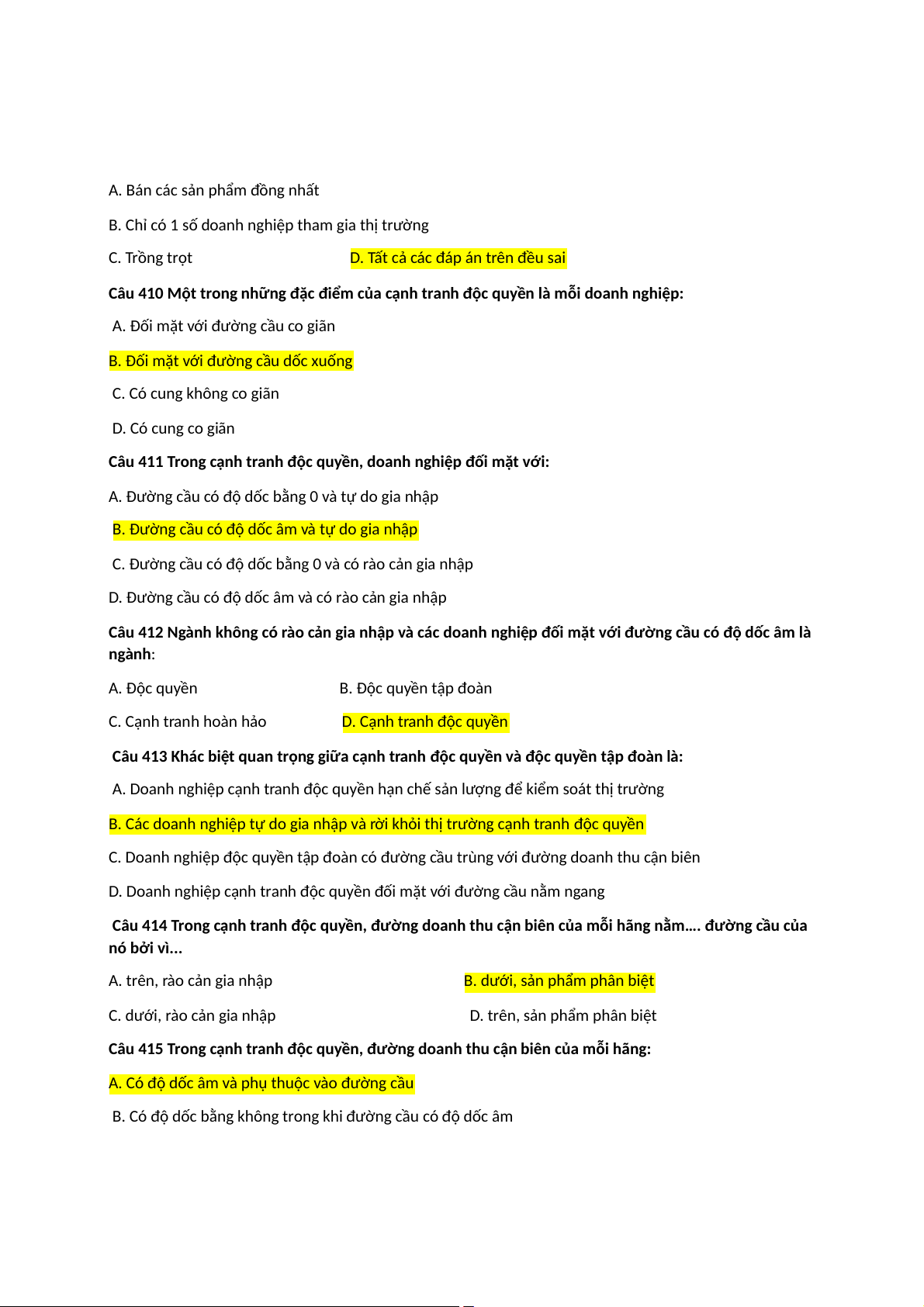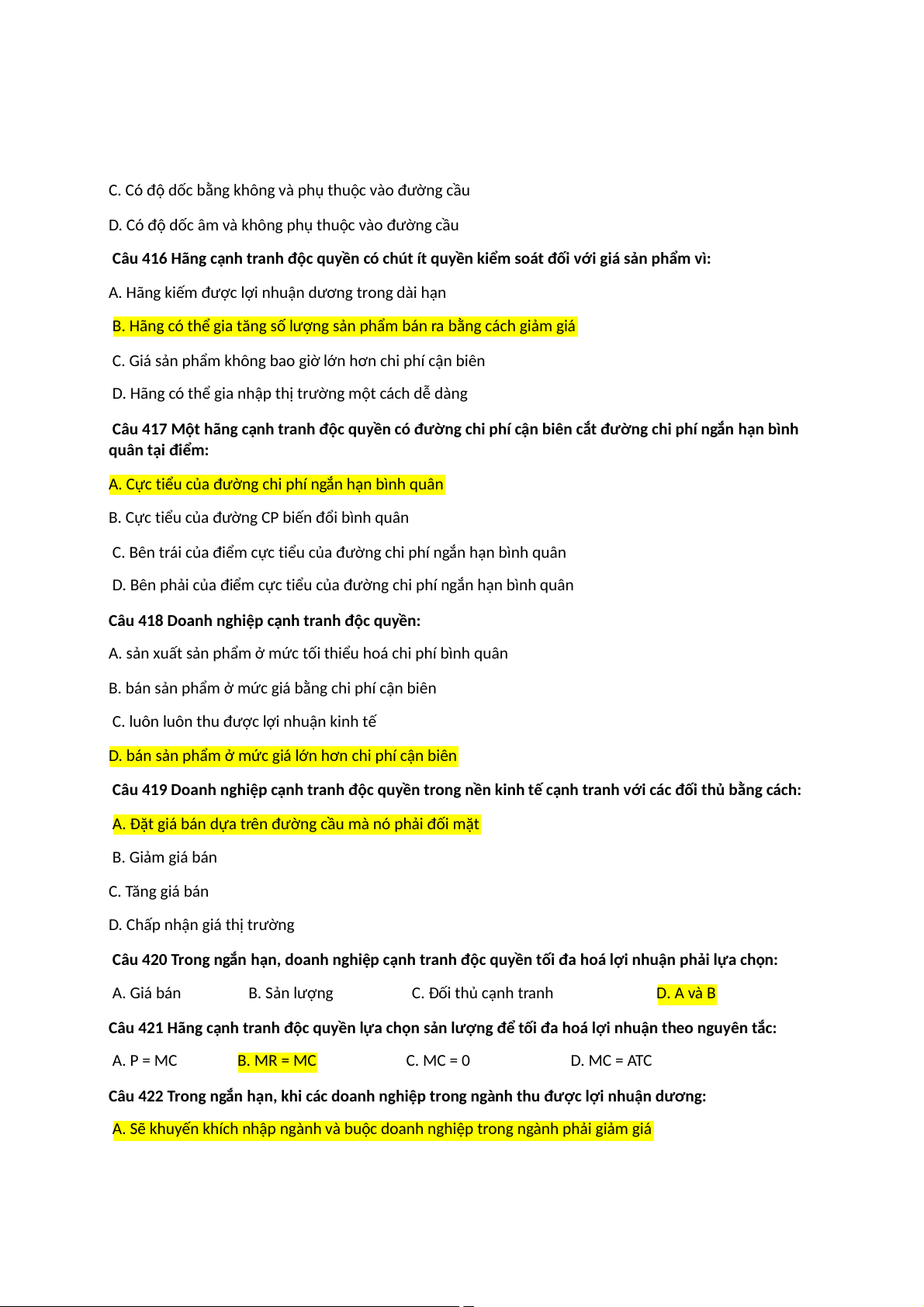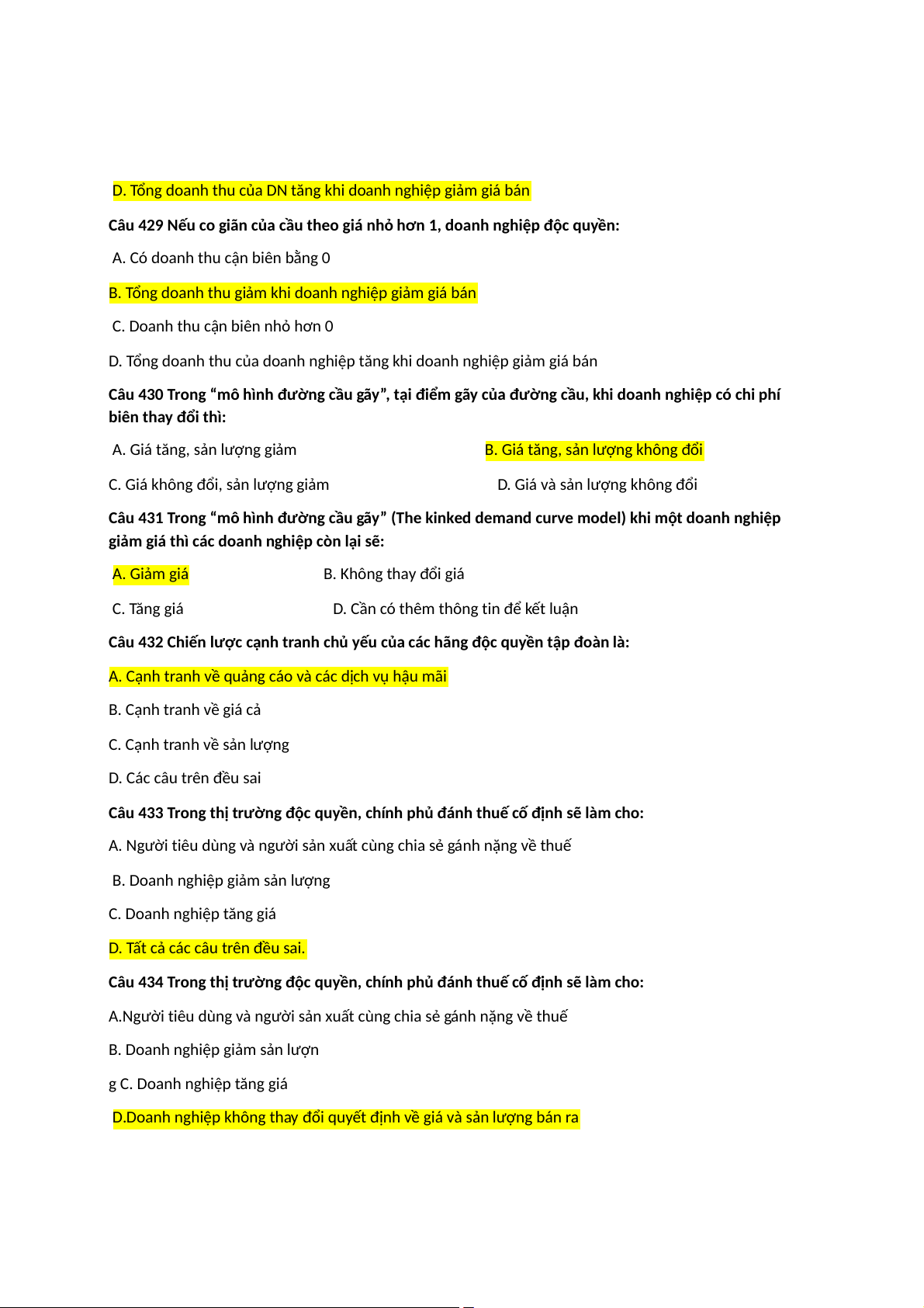 Câu 429 Nếu co giãn của cầu theo giá nhỏ hơn 1, doanh nghiệp độc quyền: