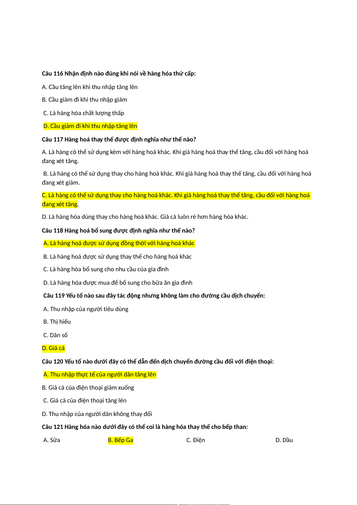 Câu 119 Yếu tố nào sau đây tác động nhưng không làm cho đường cầu dịch chuyển: