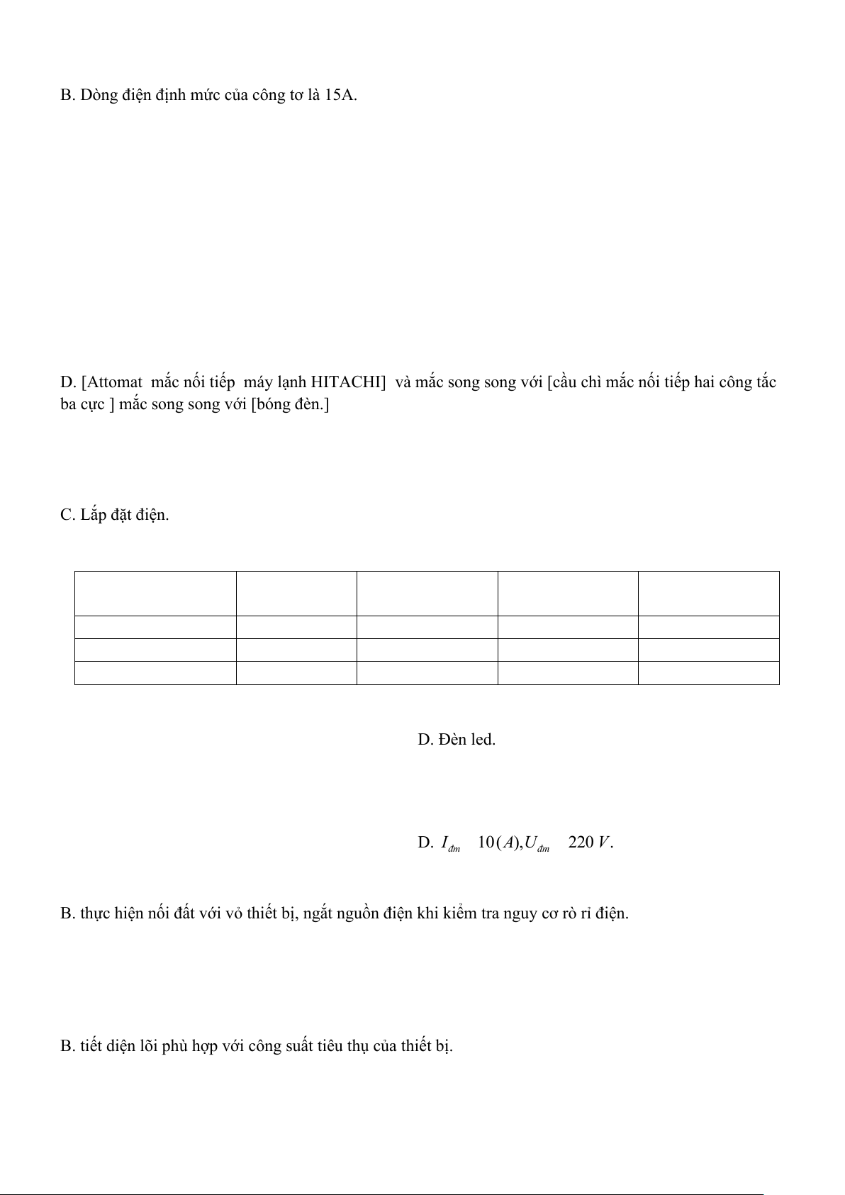 thiết bị điện dùng đồng thời là 5000 W (hệ số công suất chung của các đồ dùng điện bằng 1). Sau đây là