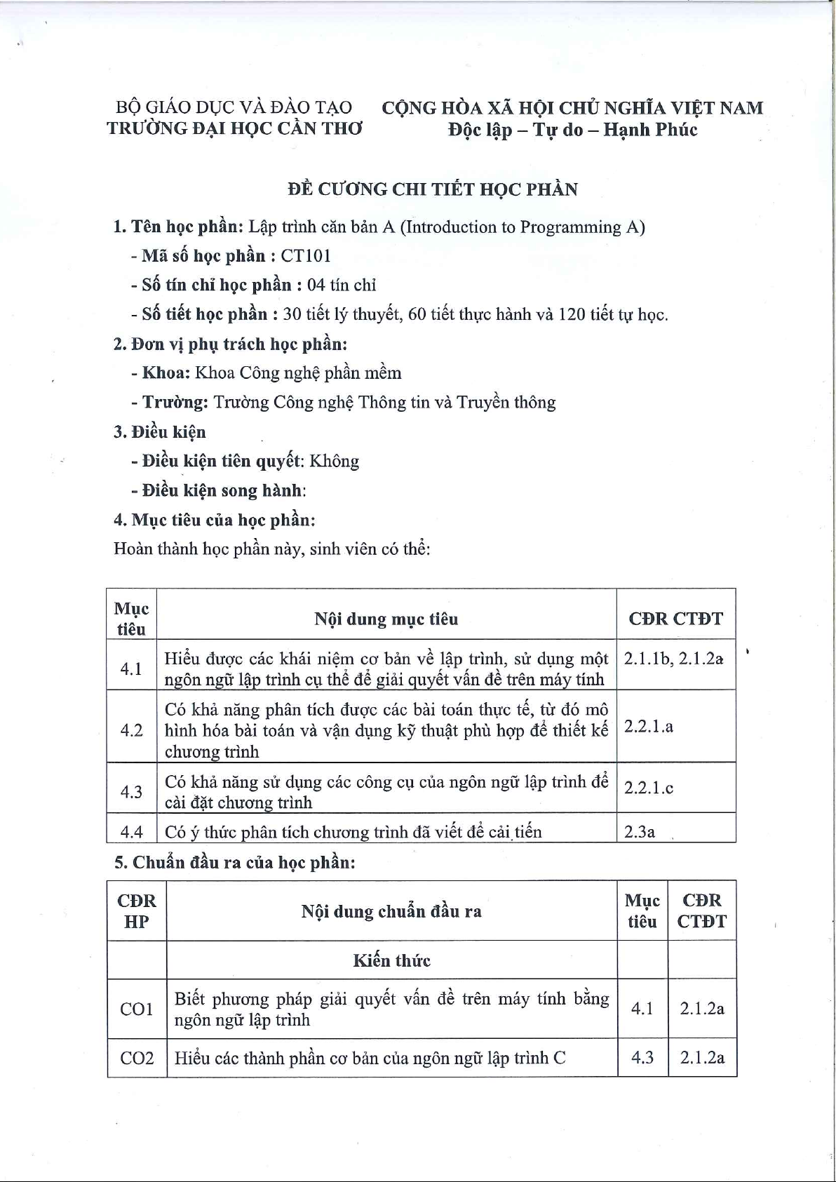 Đề cương lập trình căn bản A | Trường Đại học Cần Thơ