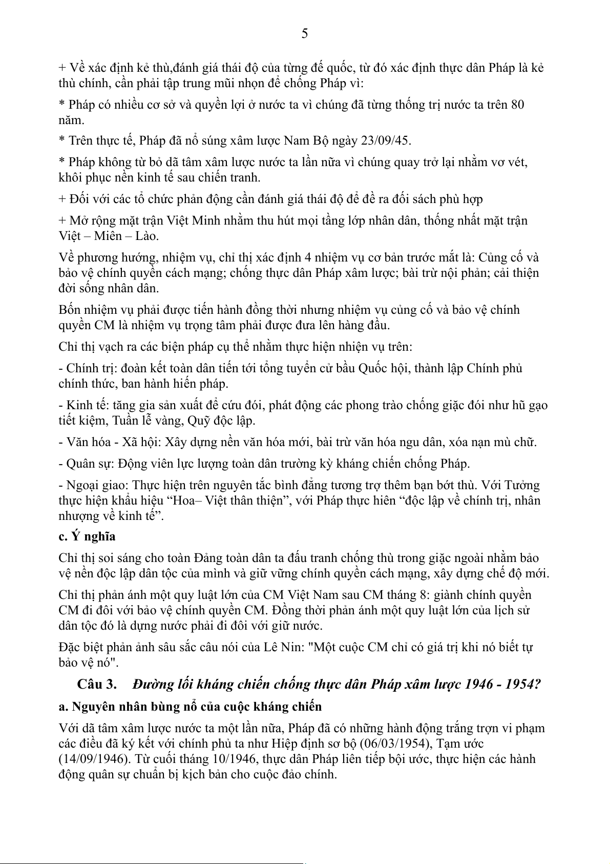 Câu 3. Đường lối kháng chiến chống thực dân Pháp xâm lược 1946 - 1954?