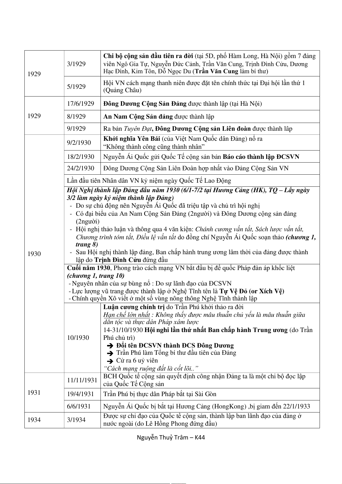 17/6/1929 Đông Dương Cộng Sản Đảng được thành lập (tại Hà Nội) 1929 8/1929 An Nam C n ộ g S n