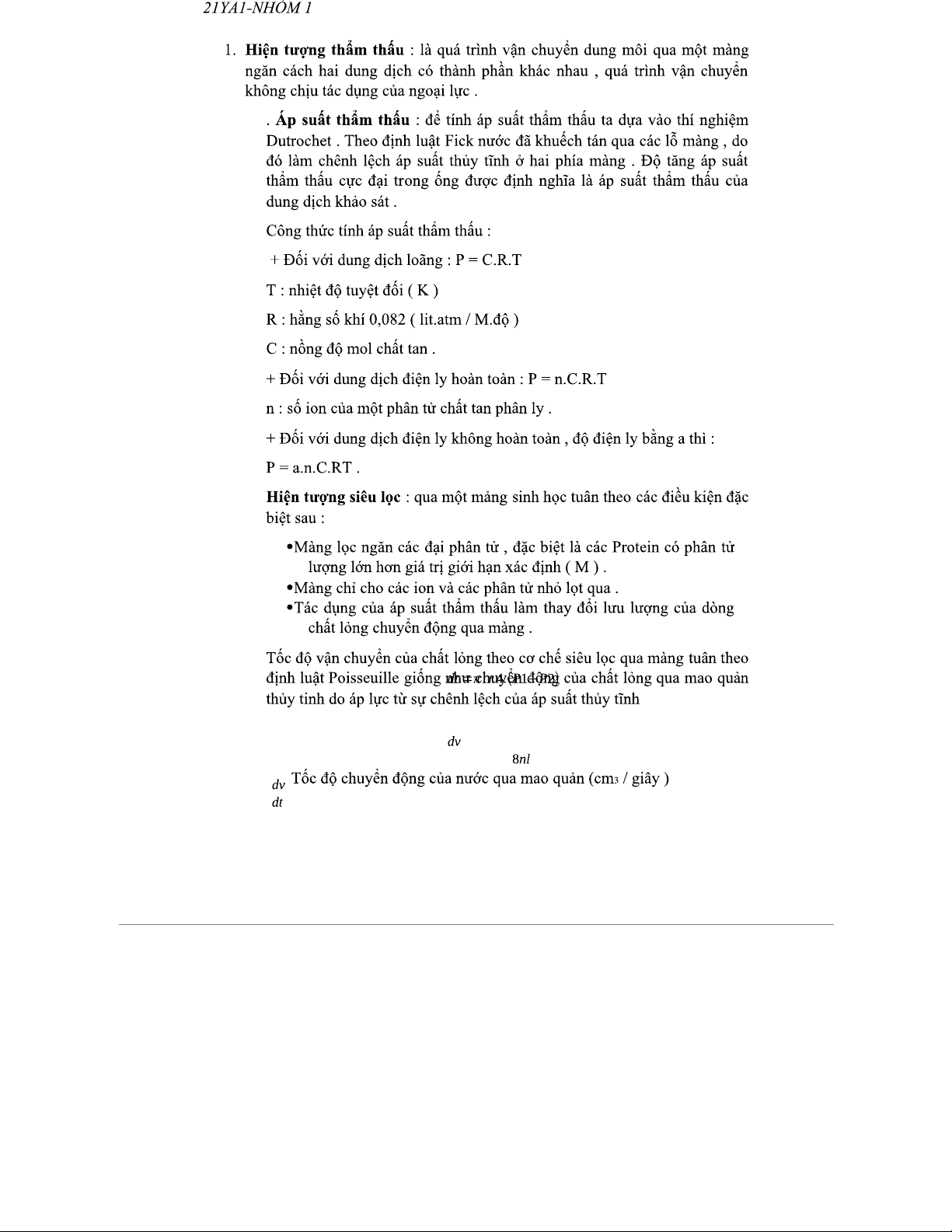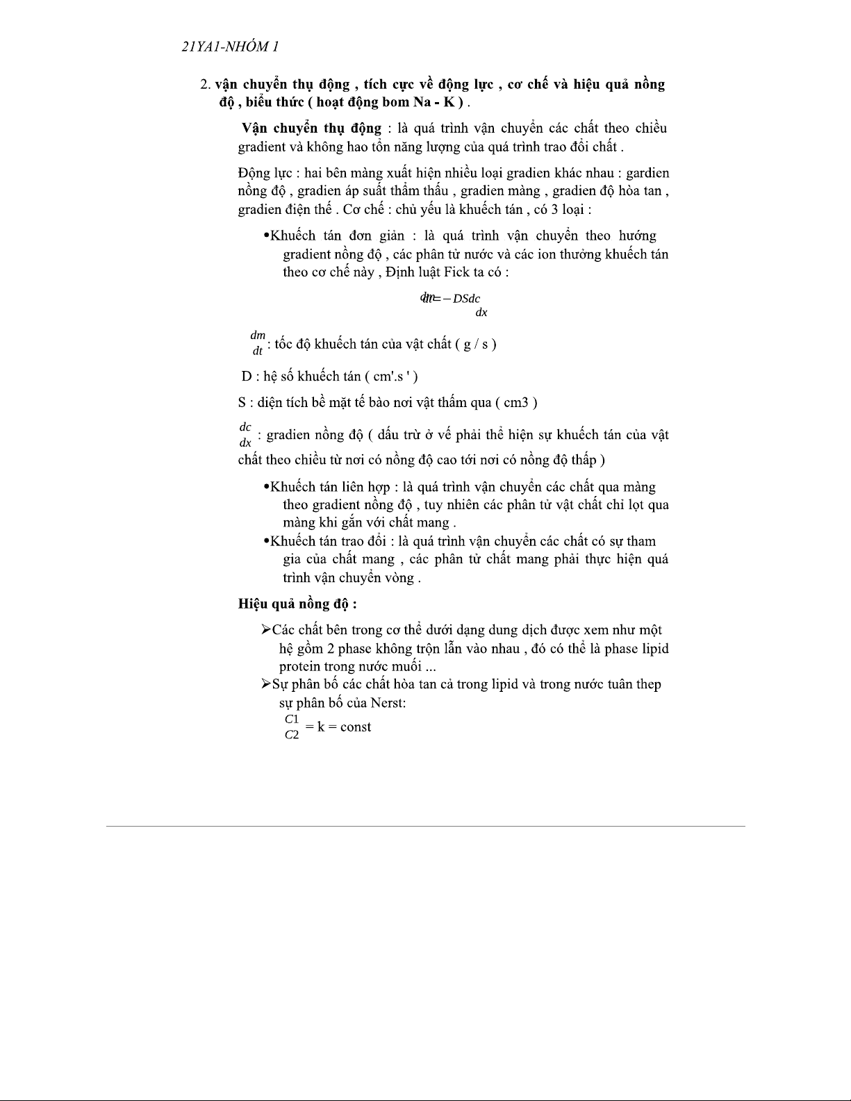 Đề cương Lý Sinh: Thẩm thấu, Vận chuyển và Nhiệt động học