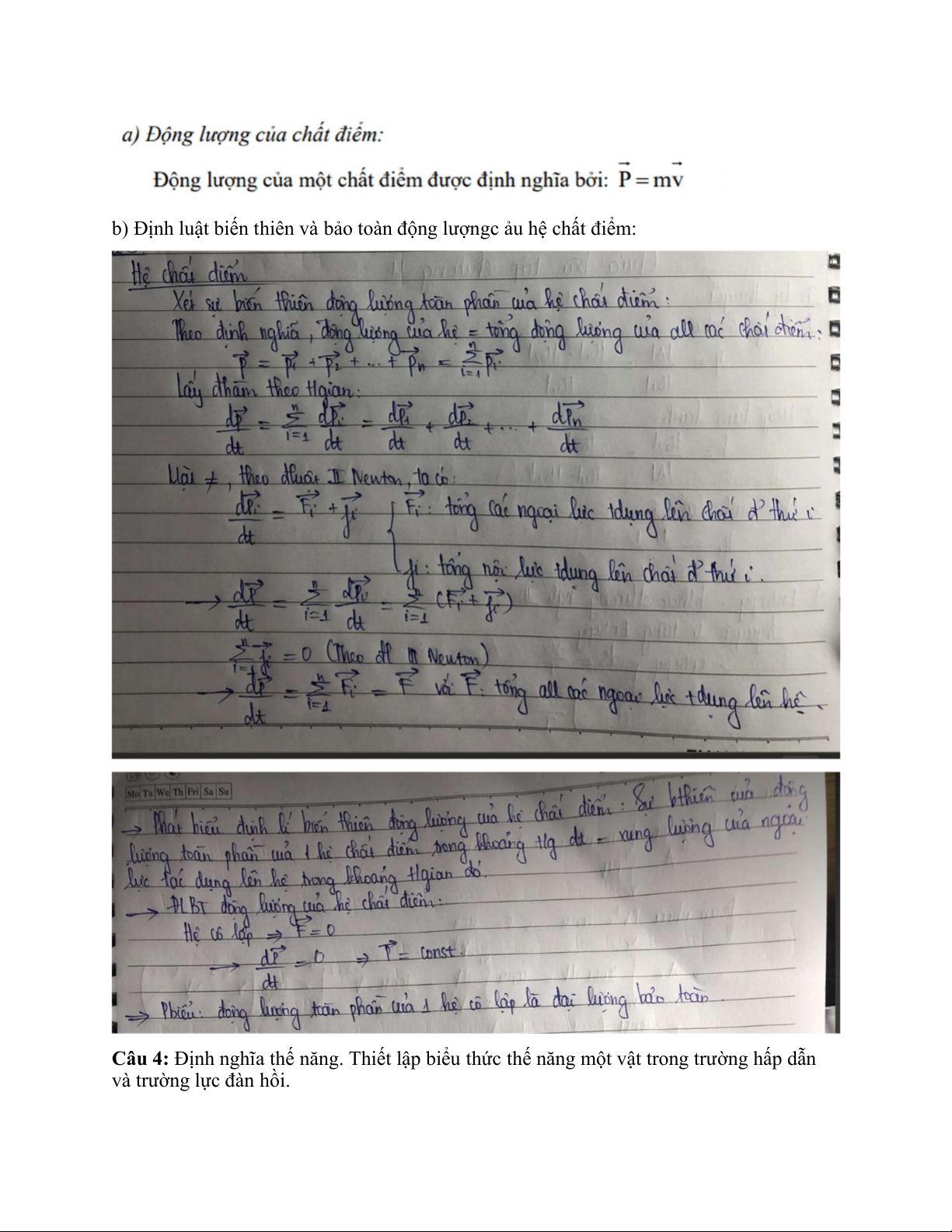 thức đó. Phát biểu và chứng minh định luật biến thiên và bảo toàn động lượng của hệ chất điểm.