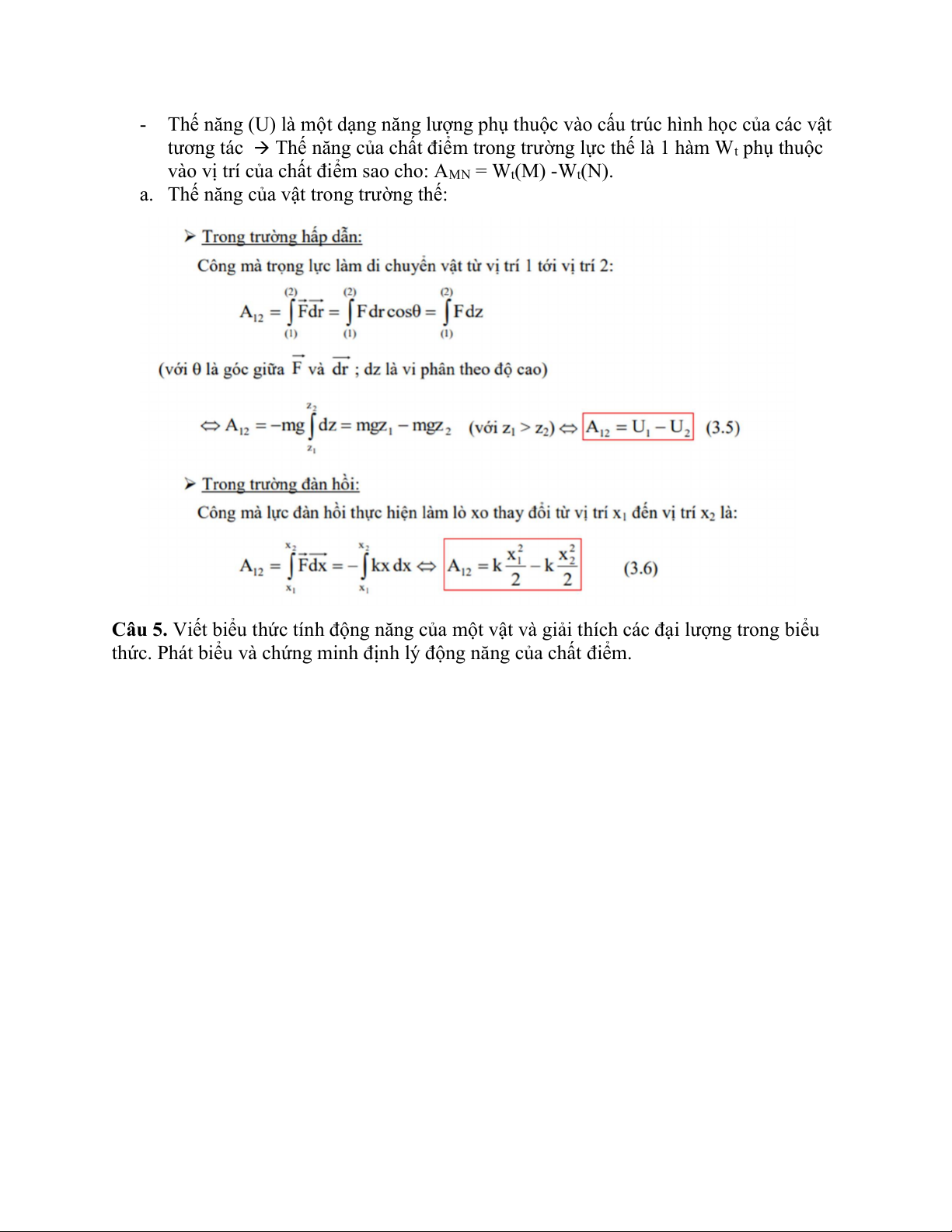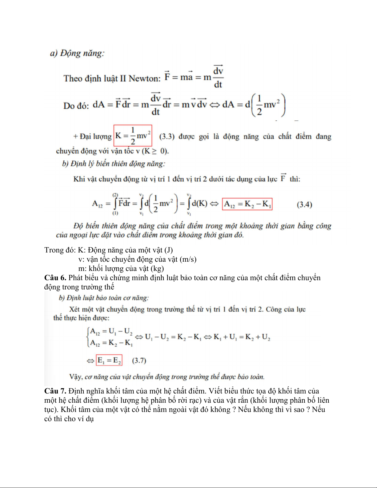 Câu 6. Phát biểu và chứng minh định luật bảo toàn cơ năng của một chất điểm chuyển động trong trường thế
