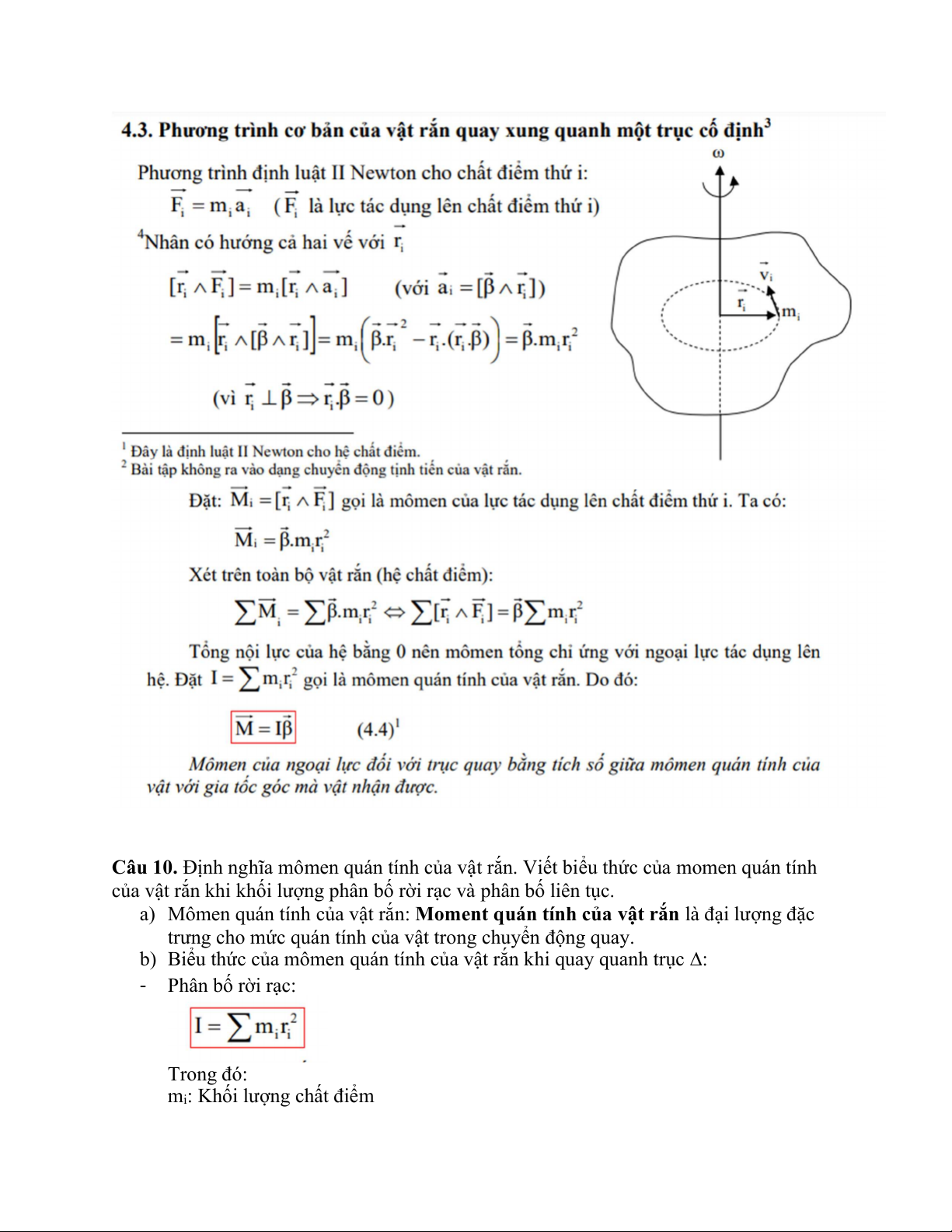 Câu 10. Định nghĩa mômen quán tính của vật rắn. Viết biểu thức của momen quán tính