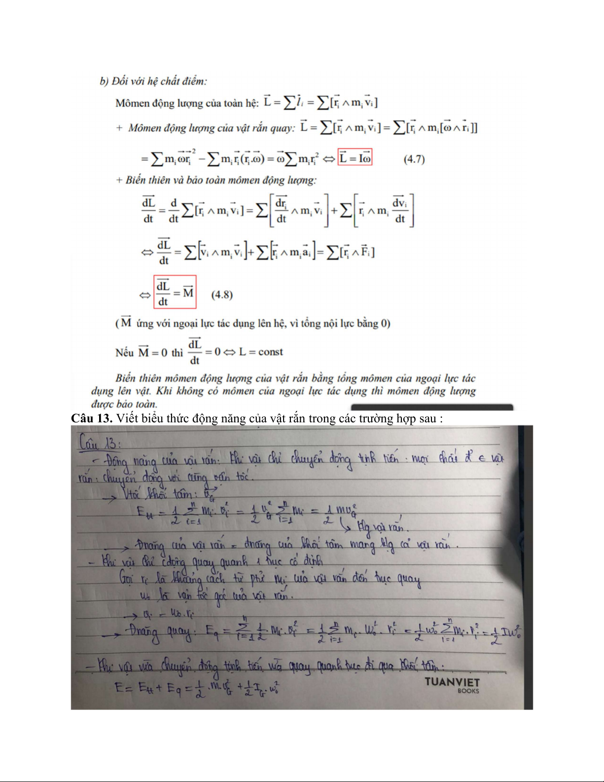 Câu 12. Viết biểu thức momen động lượng của vật rắn quay quanh một trục. Phát biểu và