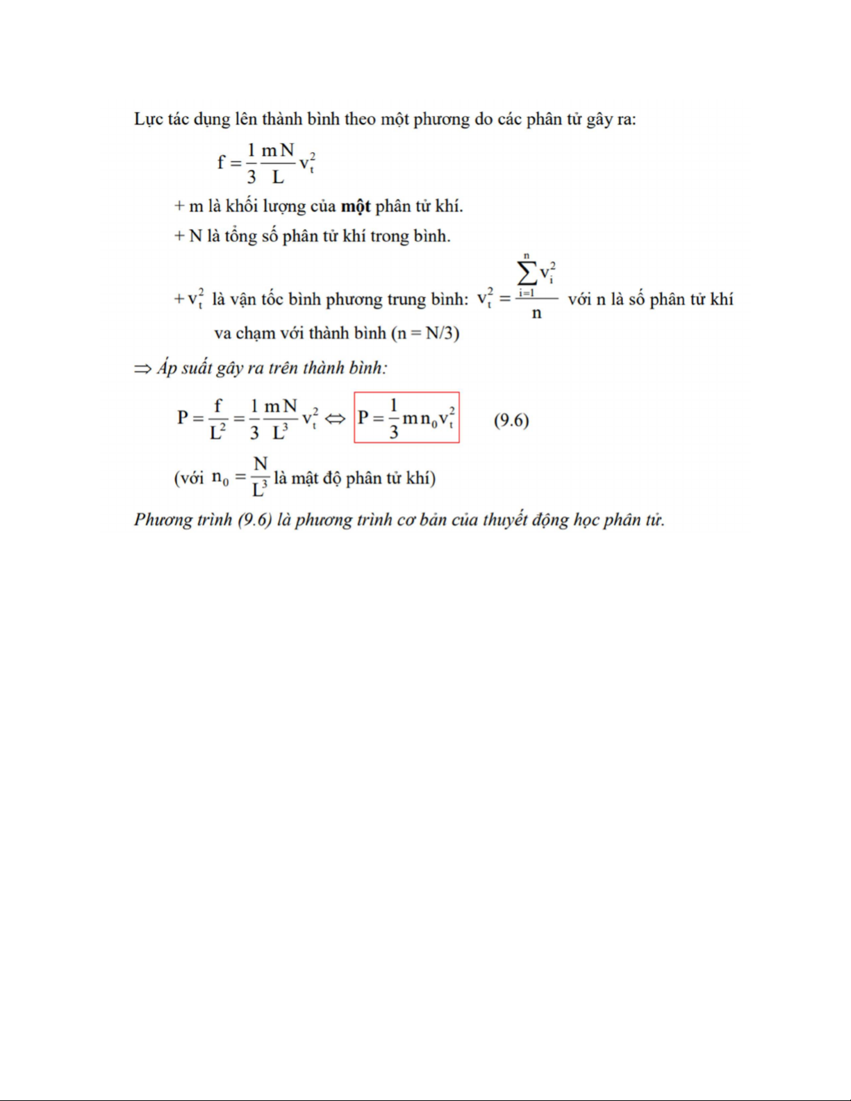 - Phương trình cơ bản của thuyết động học phân tử: